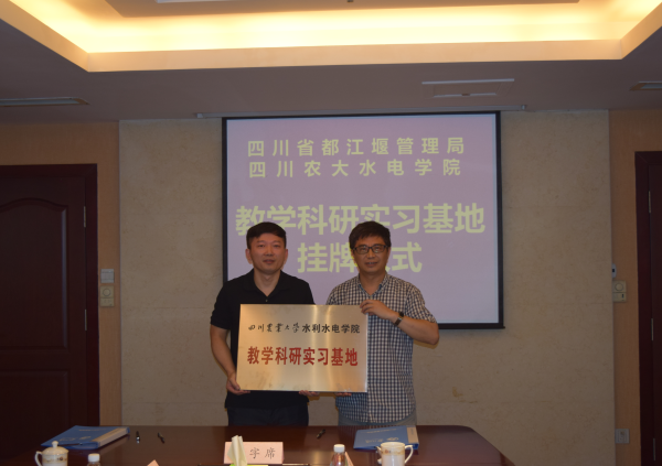 8月29日,由新葡的京集团8814登录入口院长李天率党委书记曾小波、副院长胡建、卢修元前往都江堰管理局进行实习基地建设洽谈,举行“教学科研实习基地”授牌仪式。