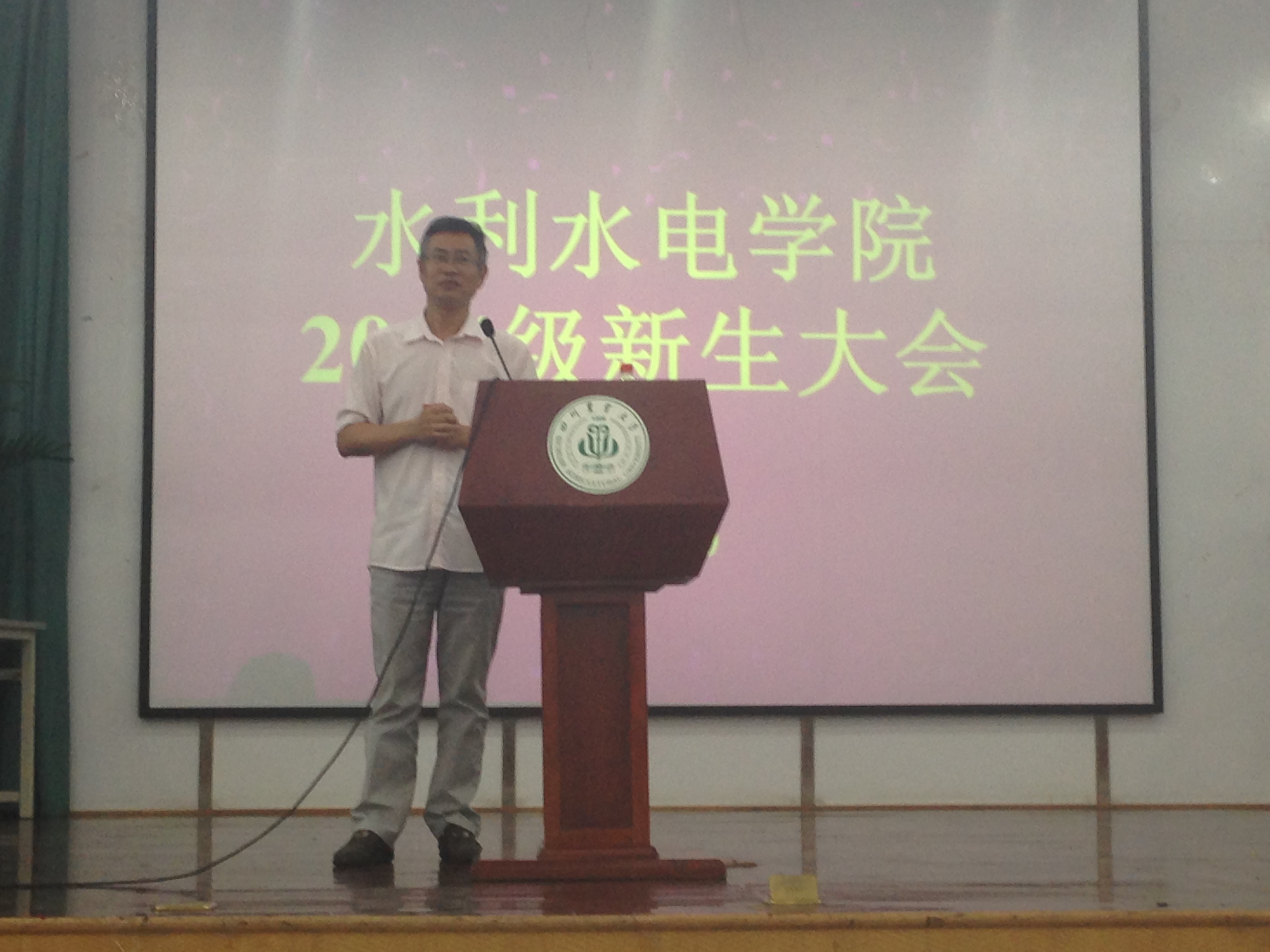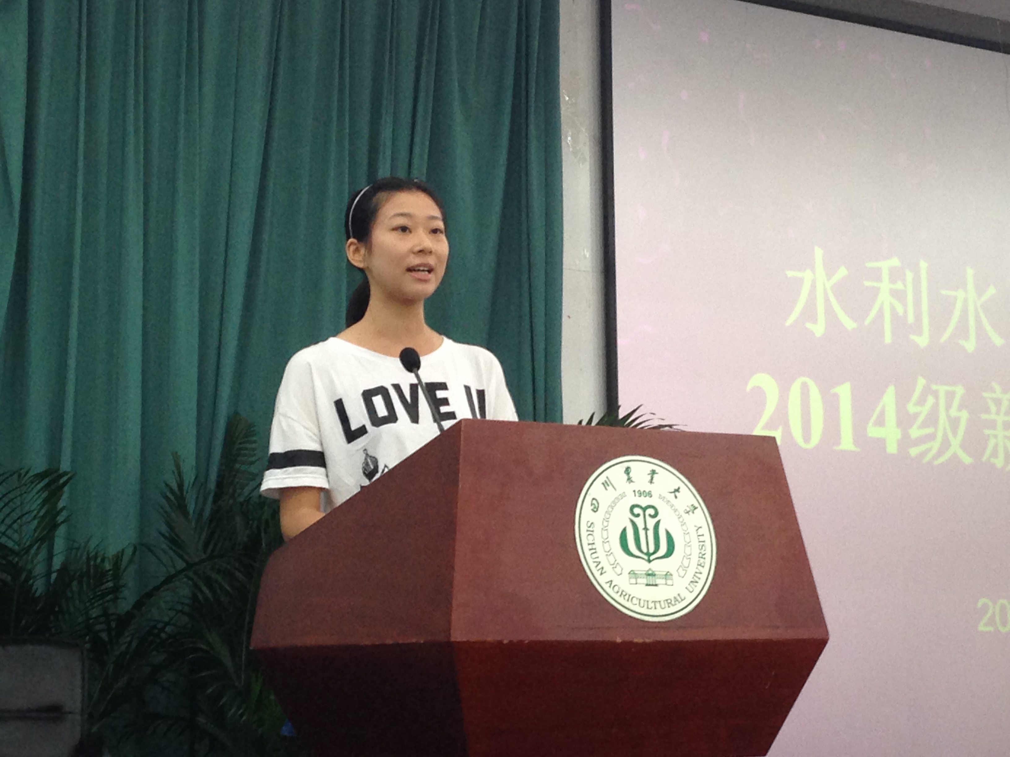 倪福全在致辞中向485名新生介绍了学院的发展情况、各专业特色及就业去向,希望新生热爱学院、热爱专业,刻苦学习,夯实专业基础知识和技能,充实地度过大学四年。农业水利系系主任张志亮博士代表学院老师热情欢迎新生的到来,并从专业课老师的角度为同学们提出了学习要求和建议;农业建筑环境与能源工程专业2014级4班的李宇昕同学作为新生代表上台发言,表达了同学们对大学生活的期待和信心。曾小波在讲话中对2014级学生提出殷切希望:希望同学们具备爱心、上进心、责任心,在接下来的四年学习生活中虚怀若谷,认清自我,勇于担当,在独立思考中成长、成熟。