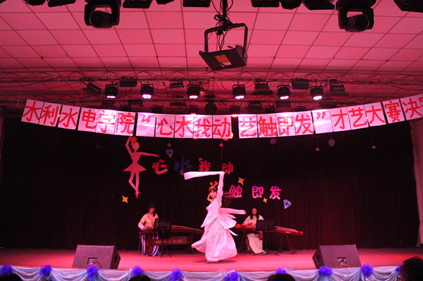 大赛通过前期海选,最终7位选手进入决赛。决赛分为两轮,参赛节目形式多样,涵盖了舞蹈、演唱、书画等多个类别。比赛一开始由院文娱部同学带来开场舞《it’s me》,全场气氛一下子被调动起来。古筝伴画《梧桐夜下声》,让人仿佛进入山水之间;根据《甄嬛传》里的情节改编的惊鸿舞,古色古香,更是博得阵阵掌声;而一支《梁祝》情景舞,再现了梁山伯与祝英台凄美动人的爱情故事,令在座的评委和观众沉醉不已;GD舞团街舞、双人热舞以及小班特色走秀,获得阵阵喝彩;曾获得校园十佳歌手称号的张大远以一首《忘记你我做不到》将全场气氛带到高潮。