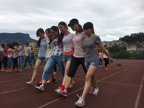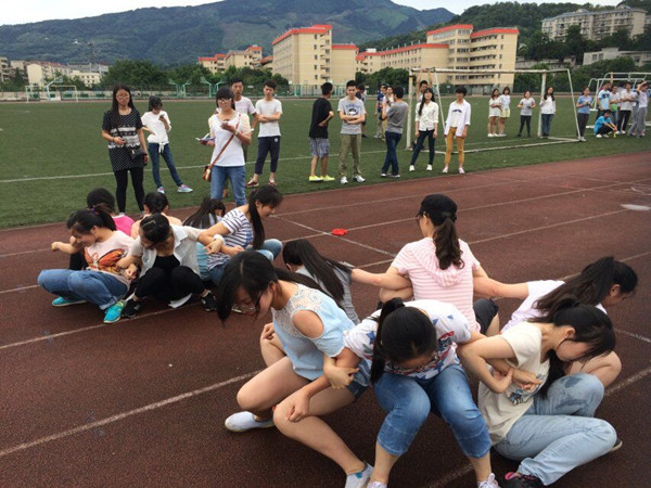 此次户外素质拓展活动以寝室为单位参赛、通过三轮比赛晋级的方式展开。第一轮为“六人七足”、“以水传情”、“同心协力”三个游戏,第二轮由“穿越火线”、“跳大绳”两个游戏组成,第三轮则是“回归童年”——丢沙包。游戏在同学们团结合作中有序开展,比赛最终决出了八强队伍,并评选出优秀奖和优胜奖各两名。
