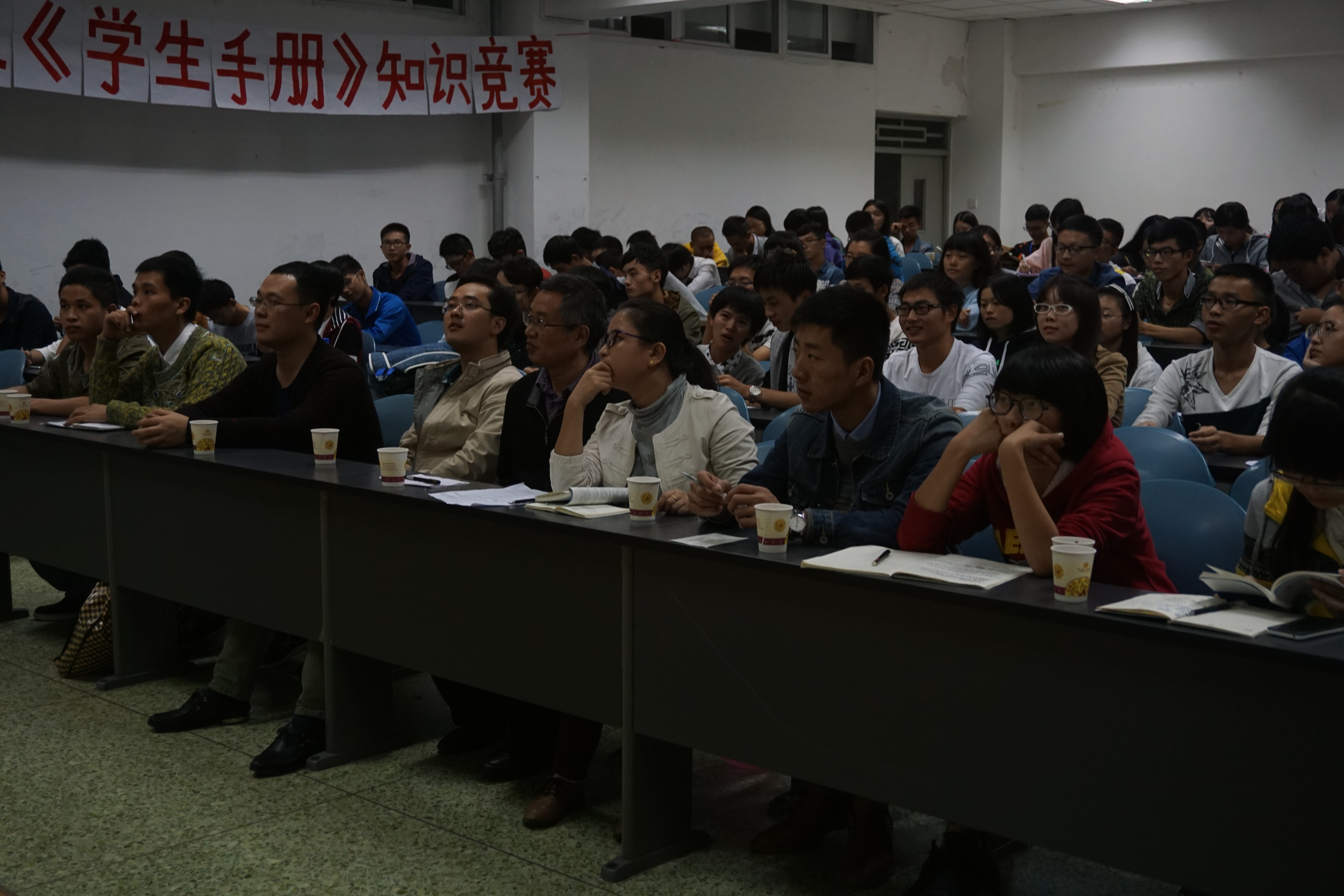 10月9日晚7点,新葡的京集团8814登录入口在十教B202举行了2015级新生《学生手册》知识竞赛决赛。学院党委书记曾小波、党委办公室老师及百余名新生参加了此次竞赛活动。