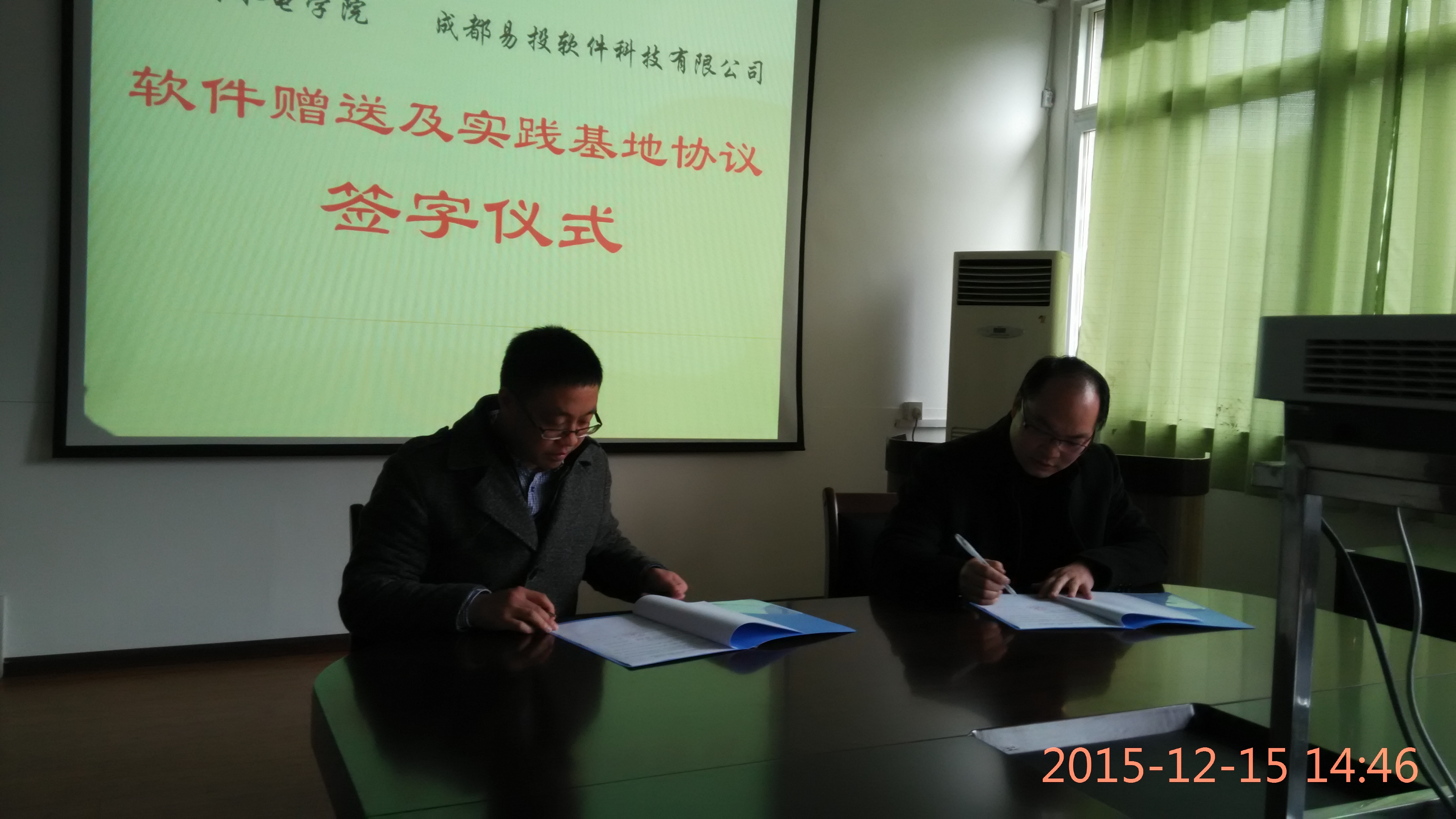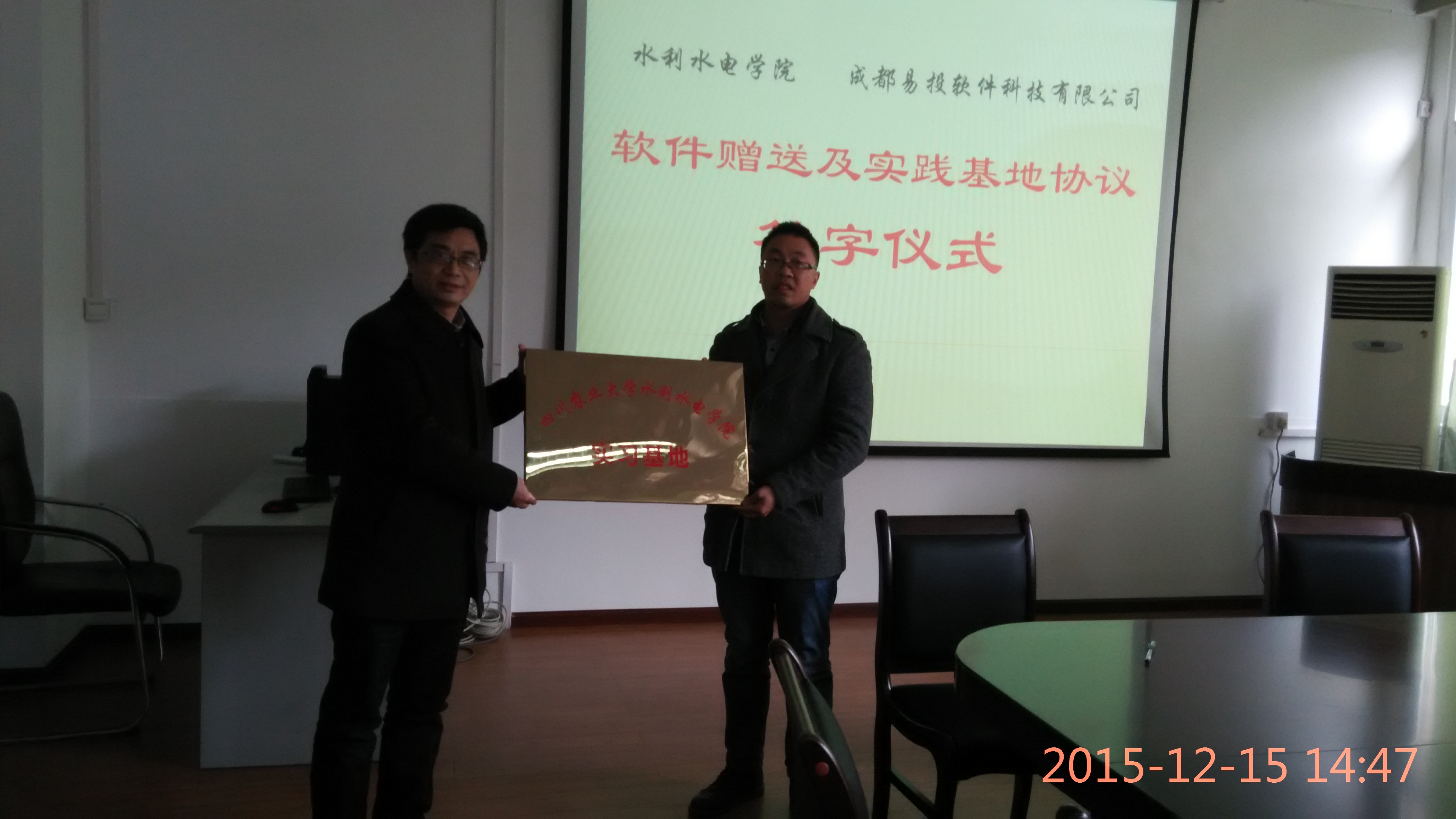 12月15日下午,新葡的京集团8814登录入口与成都易投软件科技有限公司校企合作签字仪式在4教216会议室隆重举行。新葡的京集团8814登录入口院长李天、副院长胡建、水电工程系主任杨敏、农业水利工程副系主任邓玉、成都易投软件科技有限公司总经理程永光、负责产品培训和售后服务的罗发明经理及部分专业教师出席了签约仪式。