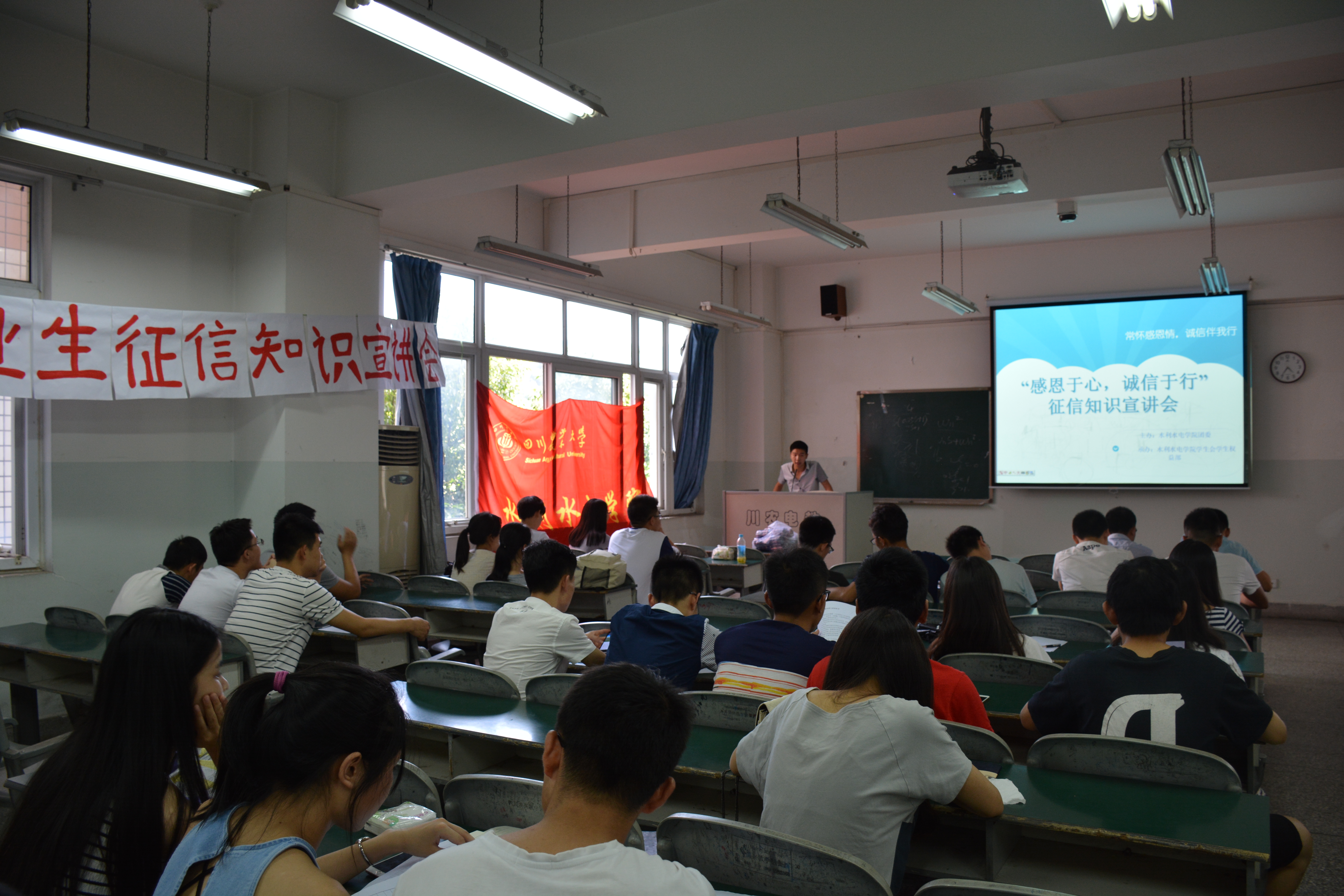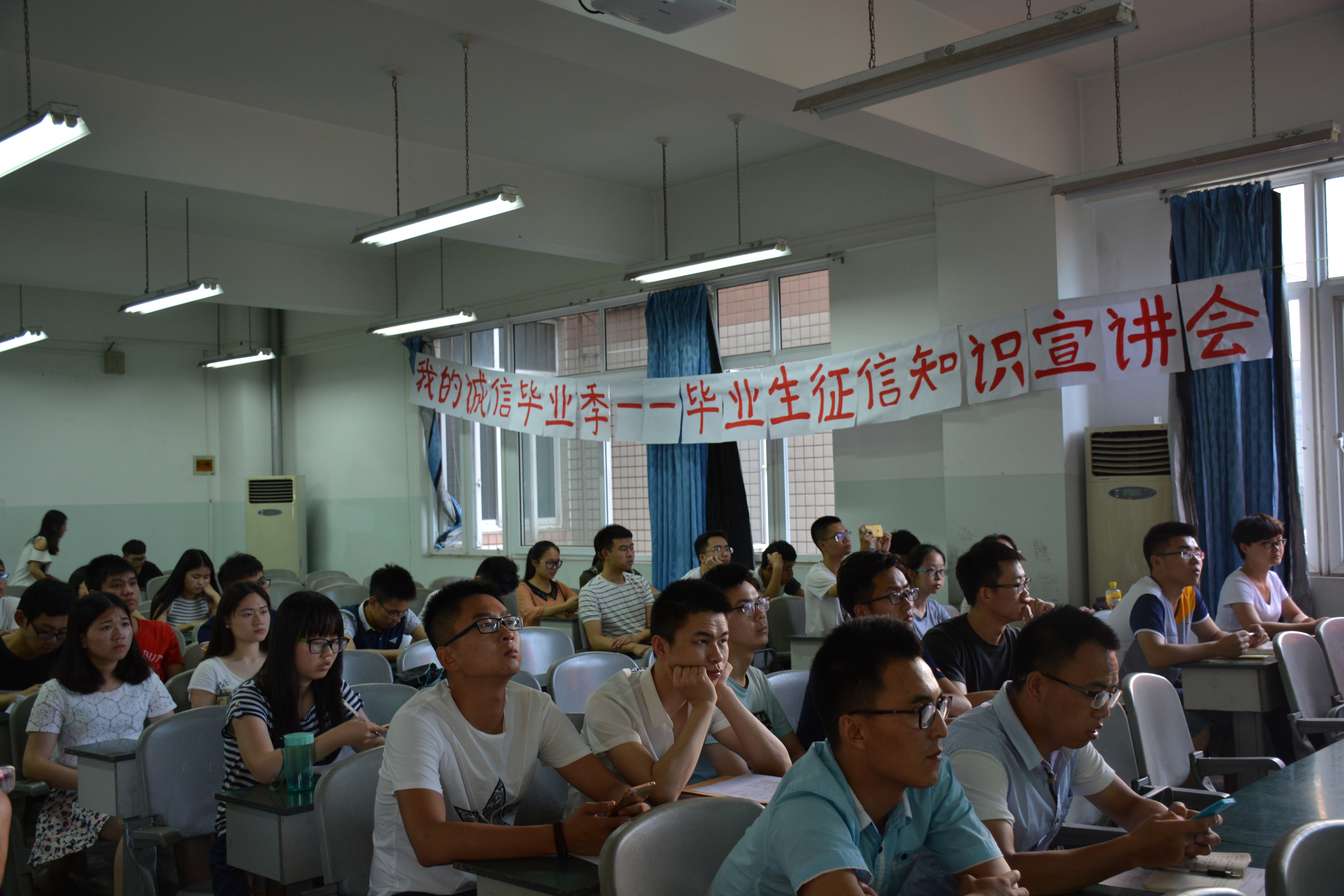 本次宣讲会主要由征信知识宣传,诚信主题视频展播,有奖竞答三部分组成。主持人用PPT向大家介绍了与征信相关的基本知识,主要回答了:征信是什么,征信“征”什么,个人在征信活动中的权利及义务是什么,个人信用报告在何处查询,征信的好处是什么这等重要问题。紧接着,组织者现场发放有奖竞答卷,趁热打铁,使毕业生们能进一步巩固刚刚所了解到的征信知识。视频中进一步介绍了个人信用报告的查询方式,特别是个人信用在当今时代新的发展和重要程度,倡导毕业生常怀感恩之心,努力工作回报社会;珍视个人信用记录,按时按量偿还贷款,在思想和行动上都做到诚实守信。