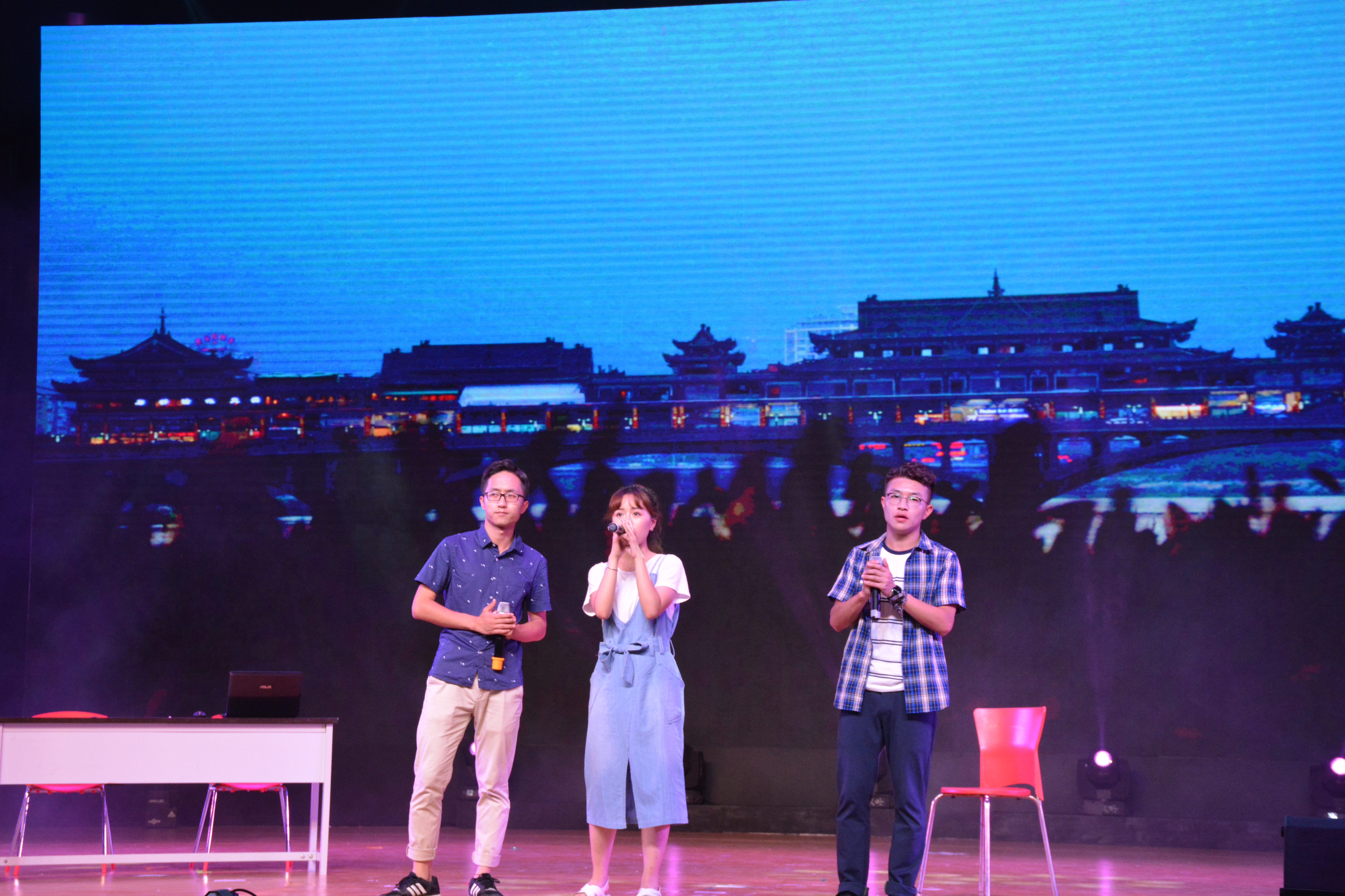 “我们的故事从相遇开始说起”初次与川农相遇的镜头拉开了晚会的帷幕。热烈欢快的开场舞之后,相声《大话川农》回忆在川农的点滴时光,毕业生代表带来的歌曲串烧《情非得已》、《黑色毛衣》句句歌词寄寓着情思,声声吟唱牵绊着心肠,节奏明快的《失恋阵线联盟》再加上俏皮可爱的舞蹈,恰似闷热天气里的一缕清风,使得观众心旷神怡。爵士舞和肚皮舞的表演热情绚烂、婀娜多姿中捎带几分异域风情,引发现场阵阵欢呼。