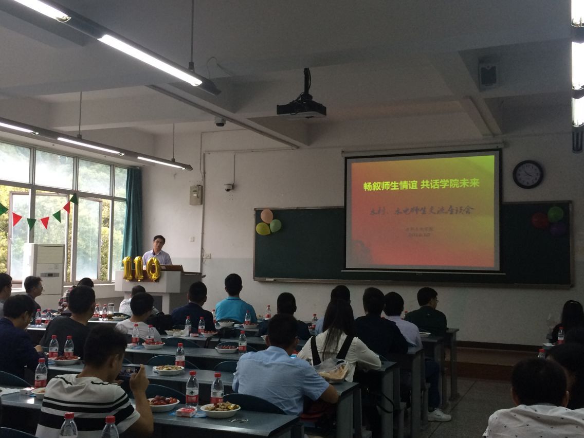 水利系与水电系分会场座谈会由学院副院长卢修元主持,学院院长李天向校友们表示热烈的欢迎,同时,详细介绍了学院目前的师资队伍建设和整体发展情况,希望校友们常回家看看,为学院的发展多提宝贵意见和建议,也欢迎在外深造的校友将来能回到学校加入学院大家庭。随后,校友们一一发言,不约而同地提到了对往日在校时光的怀念、对老师们辛勤培养的感恩,校友们根据自己的实际工作经验和体会为学院专业发展和人才培养提出了意见和建议。水利2006级校友郑姣和2008级校友刘小容谈到,希望师弟师妹们能增强CAD、CASS等实用软件使用能力,国家水利基础设施还很弱,防洪、水务管理等都还很差水利人才,水利事业岗位“逢进必考”的政策给学生带来了机会;水利2001级校友廖栋梁认为,要养成良好的工程思维、工程意识,要学好每一门课程,为将来做好知识的储备,特别是工程测量、工程建设监理、CAD等这些学了就可以立马用上的课程……