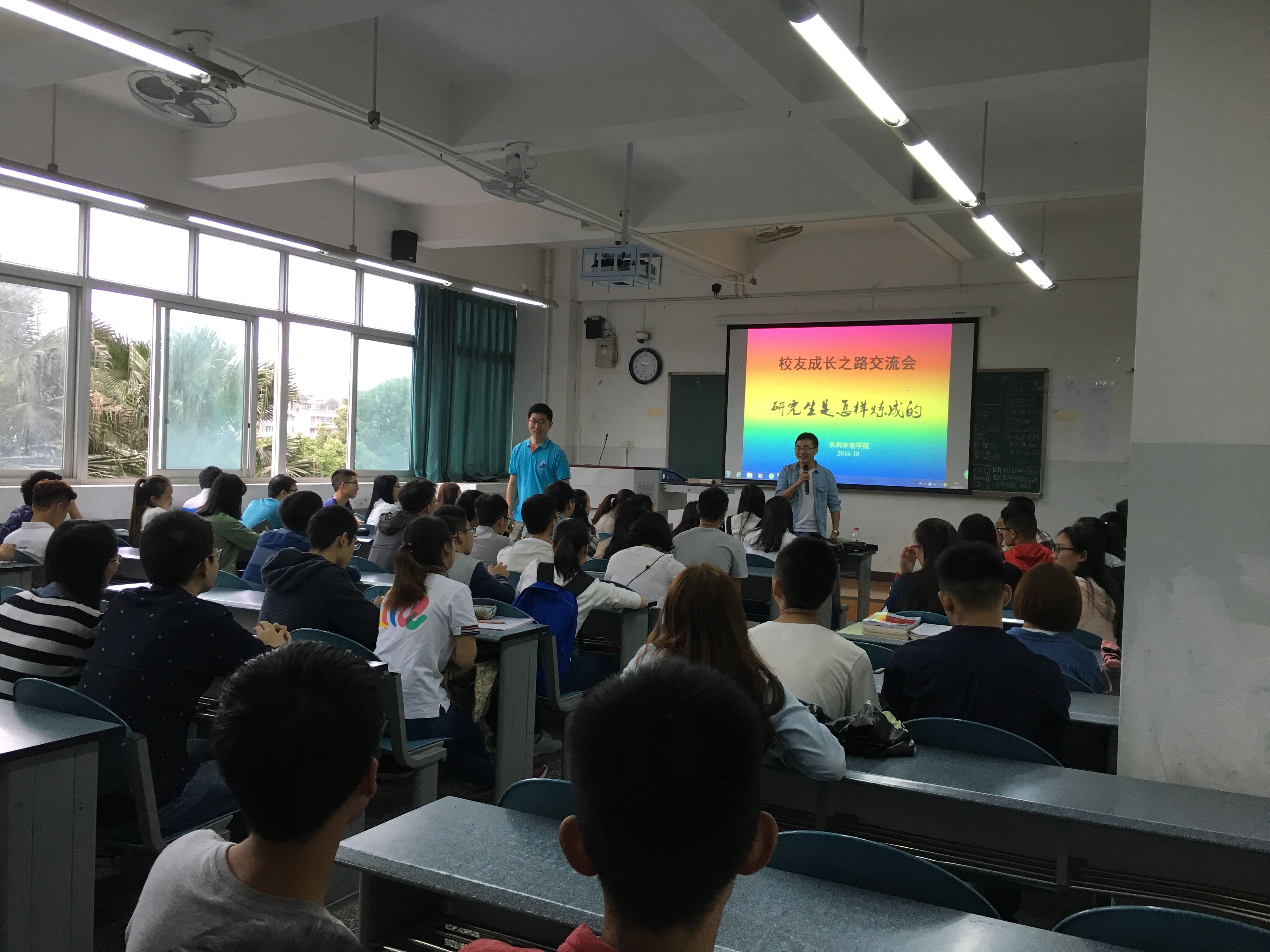 学院农业水利工程专业2010届毕业生、四川大学硕士研究生、现就职于川大设计院的田帅与农业水利工程2011届毕业生、河海大学硕士研究生、现就职成都市水务局的艾丽坤为立志考研的在校学生分享了自己考研、读研的心路历程。交流会分为“分享考研之路”和“自由提问”两个环节进行,持续了近一个半小时。
