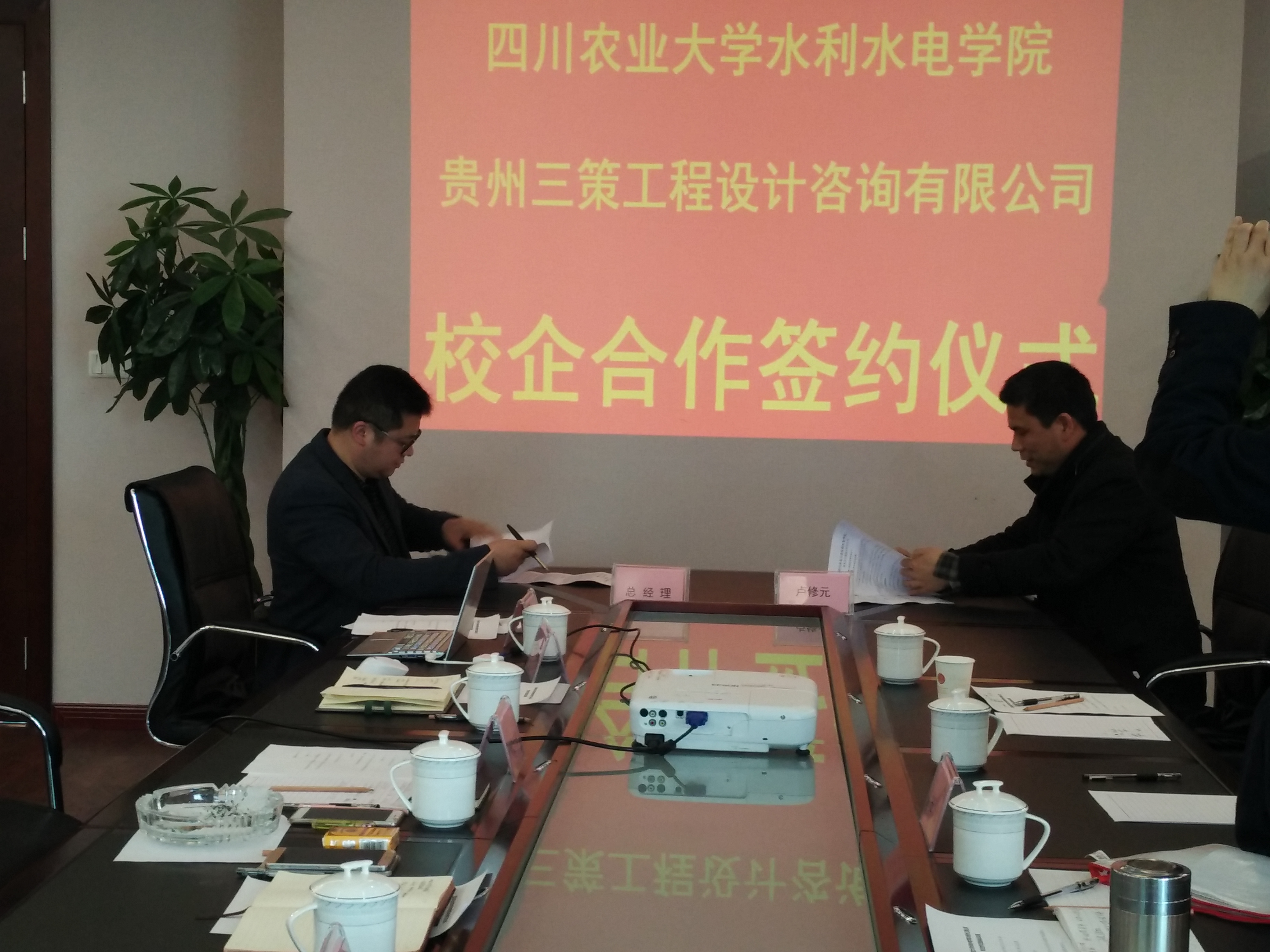 在贵阳市,贵州三策工程设计咨询有限公司总经理马俊波等公司领导热情接待了到访的卢修元等一行,而后介绍了公司的规模及主要业务范围,并表示欢迎我院相关专业的毕业生前往实习或就业。卢修元详细介绍了我院的发展概况,与会双方就就业实习基地的建设、学生实习期间的要求等进行了交流,协商构建互惠互利、优势互补、共同发展的合作机制,探讨了学院与基地单位共赢的合作模式,期望以实际工程为载体,开展互惠的项目合作。