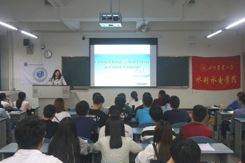 罗婷以“Climate Change,Clean Energy and Carbon Footprint(气候变化、清洁能源与碳足迹)”为题,简洁明了的从气候变化原因、清洁能源使用、以及地球生命体生活行为的碳含量、排放量等方面进行了讲解。