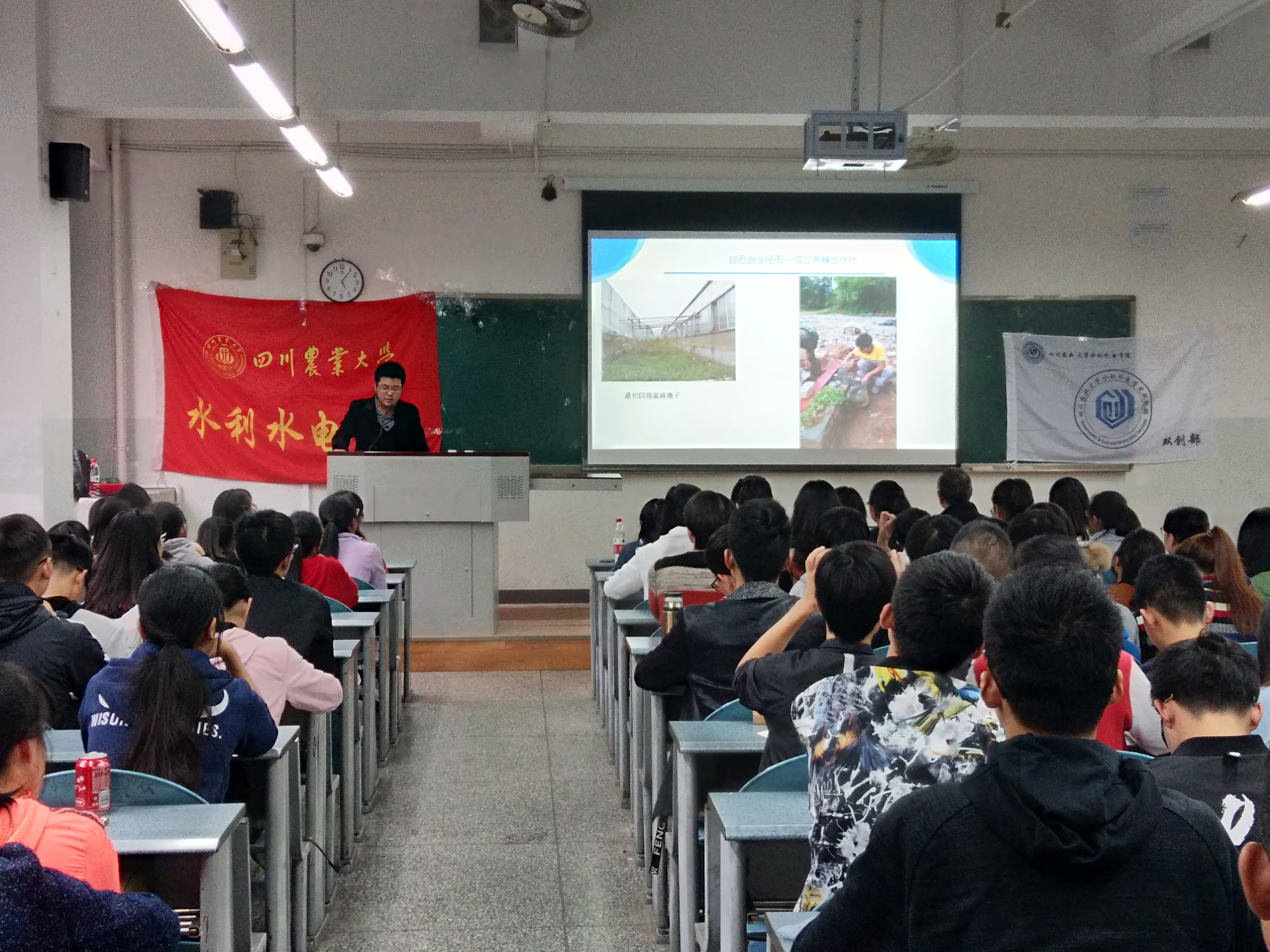 “宣讲会激发了我对‘挑战杯’、‘创青春’等创新创业相关比赛的兴趣,希望能在以后努力参加这些活动来提升自我。”17级水利2班的祝德铭听完宣讲会后激动的说到。