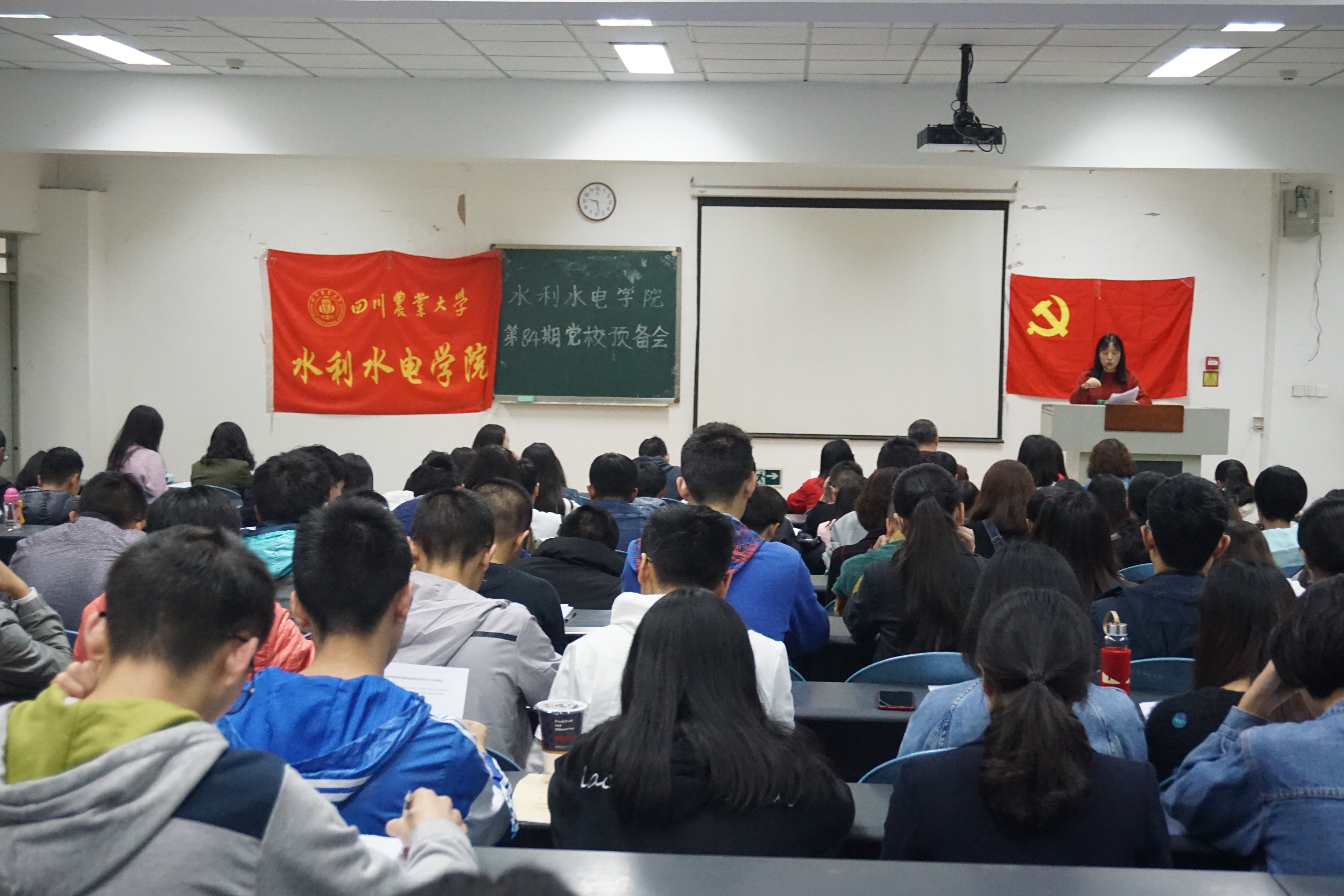 为了调动党校学员的入党积极性,端正学员入党动机,使学员更好地了解培训期间的各项规章制度和学习要求,10月24日晚,新葡的京集团8814登录入口在十教B204召开第84期党校预备会。学院党委书记曾小波、党委办公室副主任杨丽萍、党委办公室老师彭小芮、各学生党支部书记及本期党校学员共130余人参与本次会议。