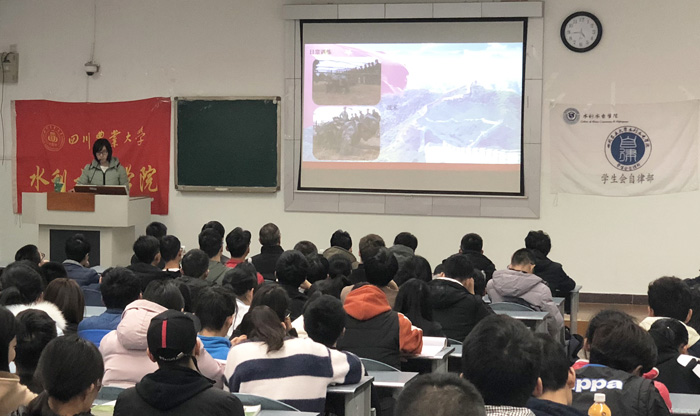 为促进同学们养成良好的学习生活习惯,加强自我管理和自我约束意识,让自律走进每个人的心中,新葡的京集团8814登录入口于11月27日下午4:30在10教A201举行了主题为“心有纪,行有律”的退伍军人分享会。曾服役于中国人民解放军某部队,现就读水利201701班的王莉君、周仁权以及曾服役于西部战区空军某部队,现就读水电201505班的刘继航应邀进行分享。学院党委书记曾小波、党委办公室老师胡敏伦出席本次分享会。大会由自律部委员李越主持。