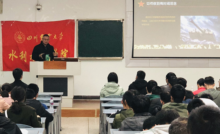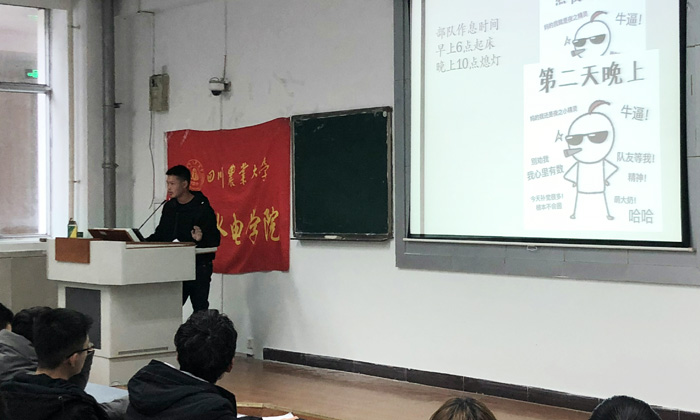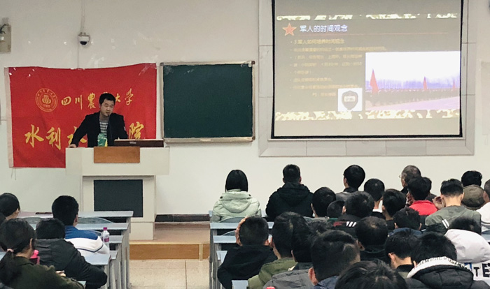 最后刘继航以“紧握时间,方显从容”为题,向同学们强调了自律的重要性。曾服役于西部战区空军某部队的他,深知时间的宝贵,哪怕只是短短的一秒钟,在战争时也会延误战机。而对时间高精度的把控,则来源于日常训练中的自律性,同时作为即将毕业的大四学生,他真切地希望同学们能有效规划时间,在有限的时间里做更多的事情来充实自己。