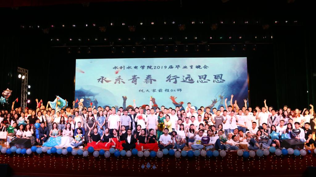 时光荏苒弹指过,在这个浓情四溢的初夏,又迎来了各奔东西的毕业季。6月11日晚,新葡的京集团8814登录入口于体育馆隆重举行“水系青春,行远思恩——2019届毕业生晚会”。学院院长李天,党委书记曾小波,副院长胡建、卢修元,行政办公室主任鲁妮,党委办公室副主任杨丽萍,各毕业班班主任,全院教职工,2019届毕业生及体育馆内观众共近1000余人观看晚会。