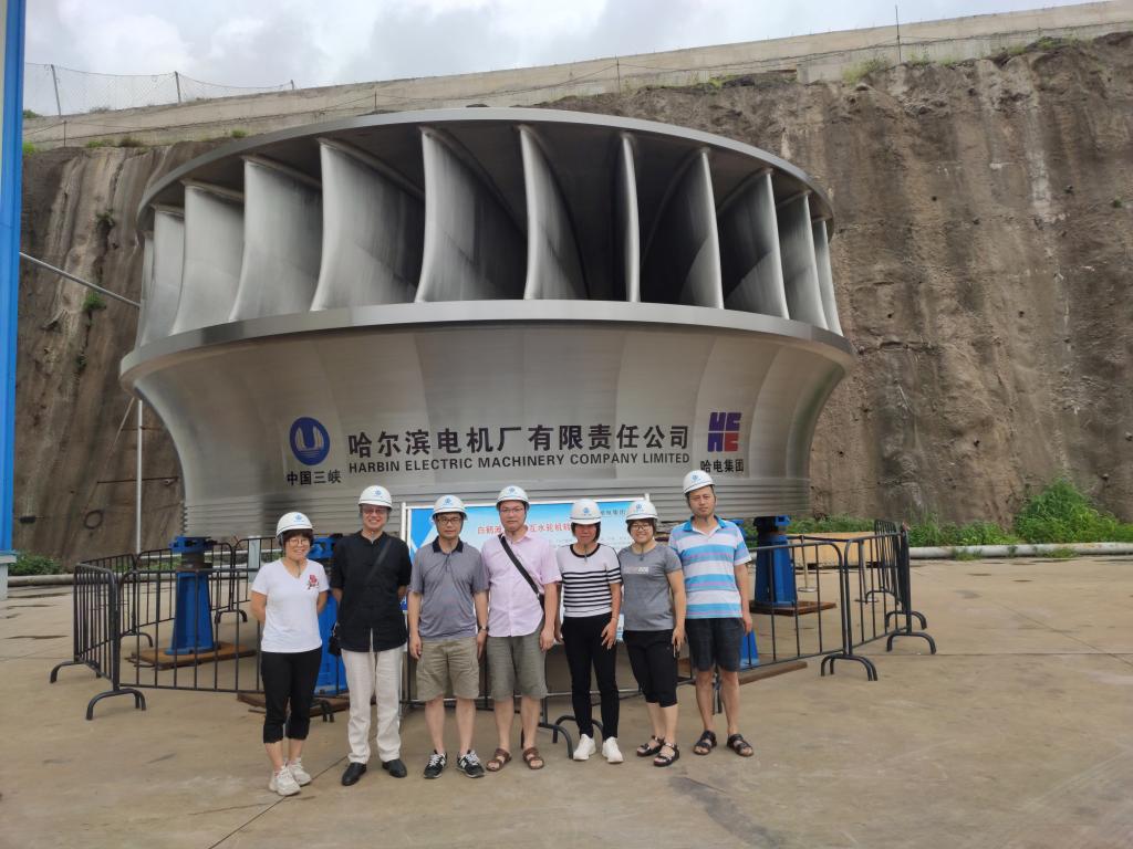 4日下午和5日上午,一行人分别参观、考察了在建的乌东德电站(坝高270米、装机总容量10200MW,是世界上目前最薄的300米级拱坝)和白鹤滩电站(坝高289米、装机总容量16000MW,是目前世界上在建的最大电站,也是世界上单机容量(1000MW)最大的电站)。在工程建设施工现场,教师们同工程技术人员就工程设计、施工中的导截流工程的布置与监测、移民安置、洞室及廊道布置、坝体混凝土浇筑及其温度缝的防止、不良地质情况的处理、电站机组的研制与加工等多方面的内容进行了深入的交流探讨。