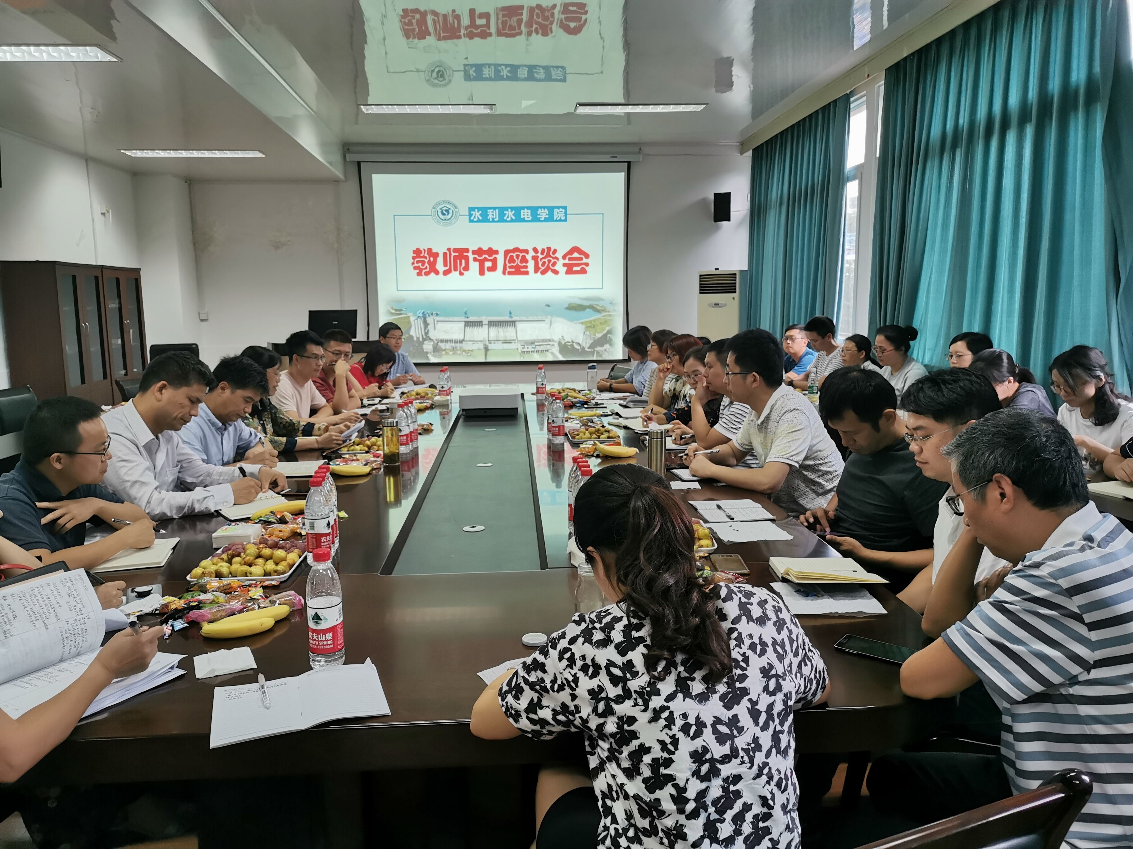 春华秋实、桃李沁香,9月10日,在这个特别的日子,学院在四教216举行教师节座谈会,学院院长李天,党委书记王莉,副院长胡建、卢修元,各系室主任及全院教职工欢聚一堂,共叙过往、畅聊未来。