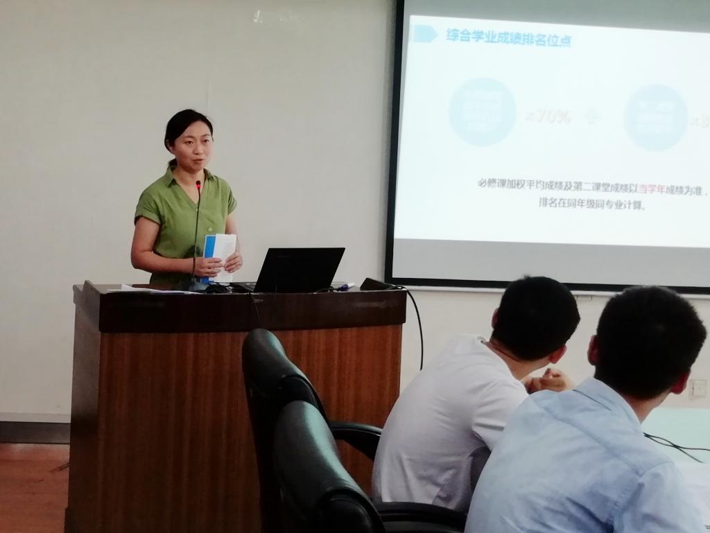 大会伊始,彭小芮对今年最新出台的评优评奖政策进行深度解读。她首先详细阐述了参评的四项基本条件:操行得分、诚信记录、课程成绩及体育成绩,并表示单项奖、创新创业典型及其他奖项只需诚信记录满足要求即可参评。值得注意的是,今年政策规定:当学年内,“优秀共青团员”、“优秀共青团干部”、“优秀学生”和“优秀学生干部”四者互不兼得,且是奖金荣誉都不可兼得,这一点与往年相比有很大不同。她细致解读了各项奖学金的参评条件,并指出需着重注意之处,如助助、奖助可重复,奖奖不可重复等。