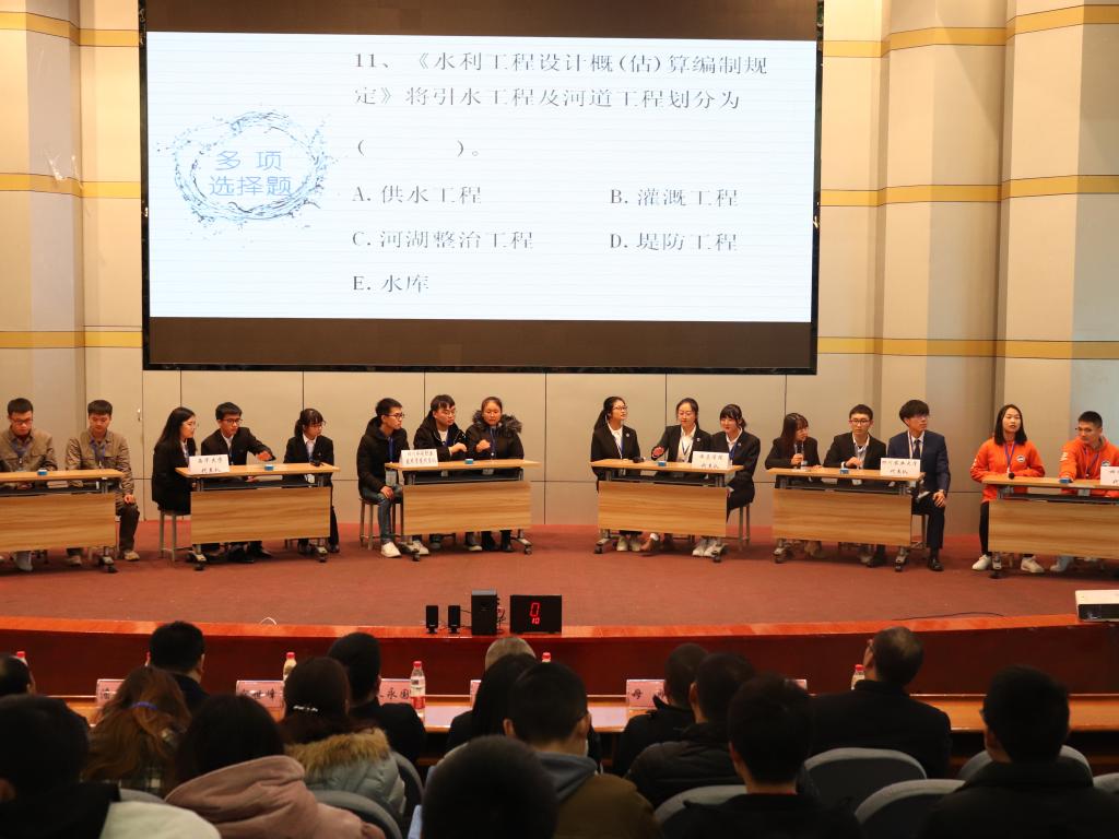 11月30日,由四川省水力发电工程学会和四川省水利学会主办,新葡的京集团8814登录入口新葡的京集团8814登录入口承办的第六届“李冰杯”水利水电知识竞赛决赛在我校逸夫楼小礼堂举行。四川大学、新葡的京集团8814登录入口、西华大学、西昌学院、四川水利职业技术学院和四川电力职业技术学院6所省内涉水利类专业高校代表队参加。四川水力发电工程学会秘书长朱永国、新葡的京集团8814登录入口新葡的京集团8814登录入口副院长胡建、四川能投电力开发有限公司总经理寇世风、四川省都江堰管理局人教处处长母刚等8位嘉宾作为评委出席本次活动,来自学院各专业的400余名学生参加此次活动,为代表选手加油打气。