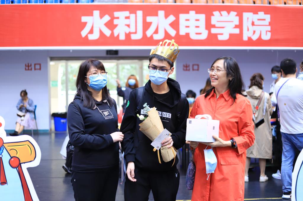 在报到的学生中,还有两位特殊学子。“第一位过生日的新生还有十分钟就到了,大家做好准备!” 学院党委书记王莉和关工委老师李琴亲临现场,为小寿星送上祝福。“生日快乐!”吕冯杰同学完成报到后便收到了生日大礼包:蛋糕、学院书记手写的明信片和寓意追求梦想和希望的向日葵花束。“太意外了,没想到学院会这么用心,还为我过生日。特别感谢学院的老师们让他的大学时光有了一个暖心的开场。”吕冯杰激动的说道。同样在迎新期间迎来生日的王宇凡同学,也收到了学院送上的“意外之喜”。据悉,早在策划期间,学院就做了详细的统计工作,结合这2名新同学的到校时间,精心为他们准备生日大礼包。