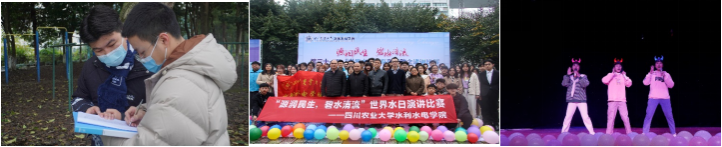 图11工程测量大赛 图12世界水日活动 图13新生才艺大赛