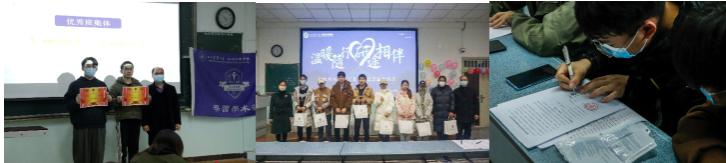 图8学风表彰大会 图9考研送温暖 图10签订学风建设目标任务书