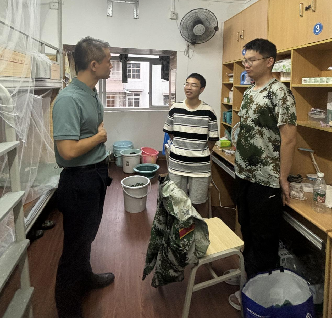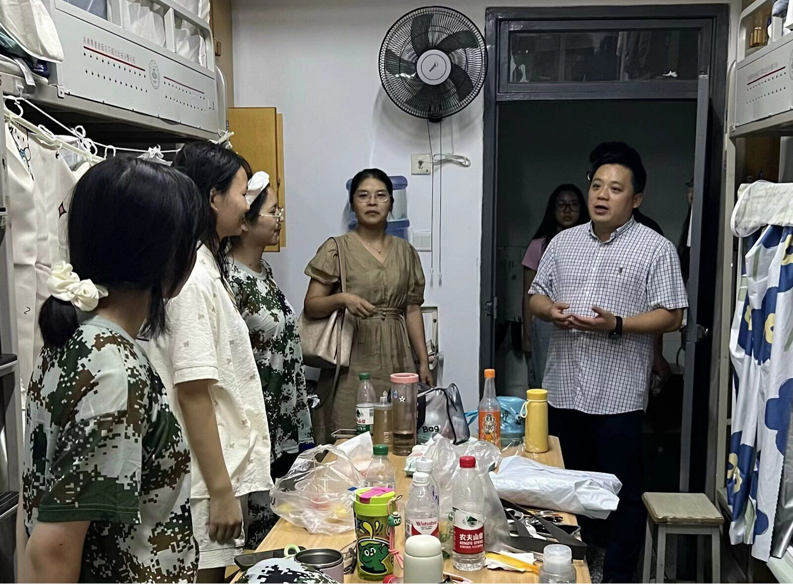 胡建在走访的过程中关心慰问每位学生的情况,提醒同学们要注意宿舍安全,养成良好的生活习惯,共同营造一个温馨、和谐的宿舍氛围,并鼓励新生要树立明确的学习目标,不断成就自我。