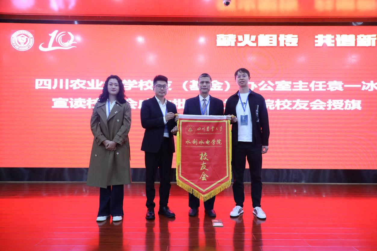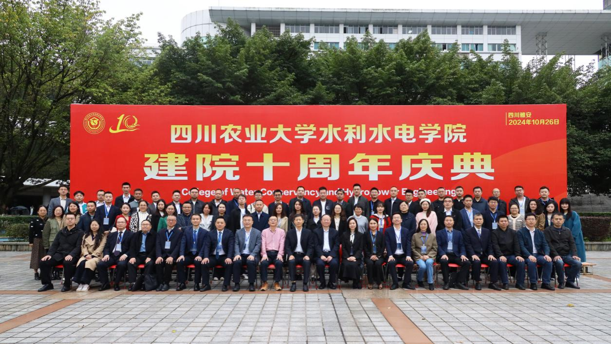 此次纪念大会分为“致青春·再起航”“谱新篇·水利梦”“新时代·新农人”“川农情·满天星”四个篇章,分别由学院党委书记马海,学院院长曹迎,学院副院长胡建,学院副院长卢修元主持。出席大会和相关活动的有:学校党委副书记张强、四川省水利学会理事长张强言,四川大学新葡的京集团8814登录入口院长杨兴国,中国农业大学水利与土木工程学院院长李云开,四川省水利规划研究院副院长、水利学会秘书长谢直卉,中国电建集团成都勘测设计研究院总工程师夏勇,四川省水利人才资源开发与档案中心李春成,成都中土工程设计有限公司总经理丁建平,四川弘诚天毅工程咨询股份有限公司党支部书记许进,四川嘉泰来农业科技有限公司总经理陈志凌,雅安市水利局副局长杨晓波、黄忠胜、张毅,雅安市文旅融合发展服务中心副主任李海霞,学院院长曹迎、学院副院长胡建、卢修元等出席大会。学校各级职能部门领导、学院历任党政主要领导、校友理事会成员、优秀校友代表以及新葡的京集团8814登录入口的师生代表欢聚川农,共同回顾过去、展望未来。本次大会通过网络直播形式实时将这一纪念性的时刻与海内外未能亲临现场的嘉宾们分享,2963人次在线观看了直播。会上还首映了新葡的京集团8814登录入口的建院十周年纪念宣传片。院庆在庄严的国歌声中拉开帷幕。