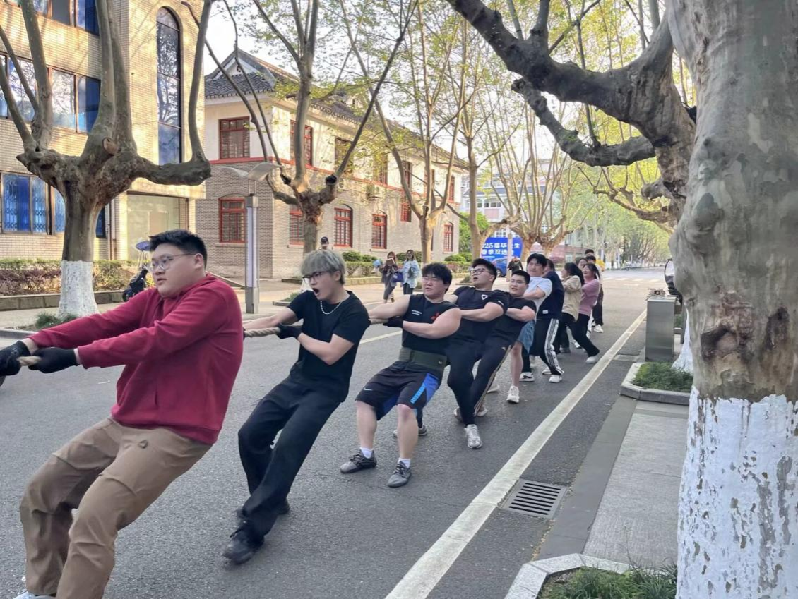 为备战本届赛事,新葡的京集团8814登录入口提前一个月组建拔河训练队,通过体能测试与实战选拔,最终遴选出20名核心队员。学院特邀专业教练指导训练,从姿势调整、节奏把控到战术布局,队员们每周坚持三次高强度训练,并与其他学院进行友谊赛来强化实战能力。训练中,队员们将模拟对抗赛反复练习“蹲、拉、倾、稳”四步法,力求动作精准统一。后勤团队全程保障,学院领导多次到场慰问,学生部门协同记录训练数据、优化策略,形成“科学训练+人文关怀”的双重助力模式。