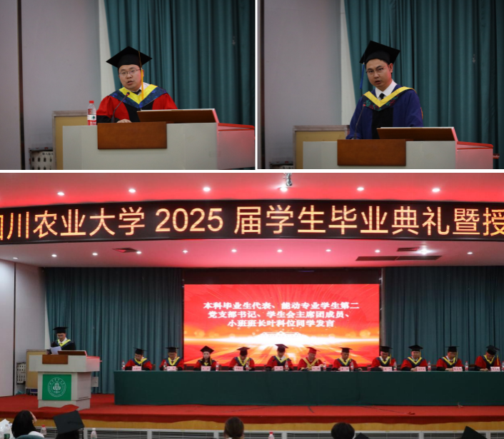 本科生代表叶科位表示,在求学生涯中深刻领悟到要从基础做起,脚踏实地。他以在图书馆学习和操场夜跑的经历,抒发了对学校的不舍与热爱,并向同学们送上美好祝愿。