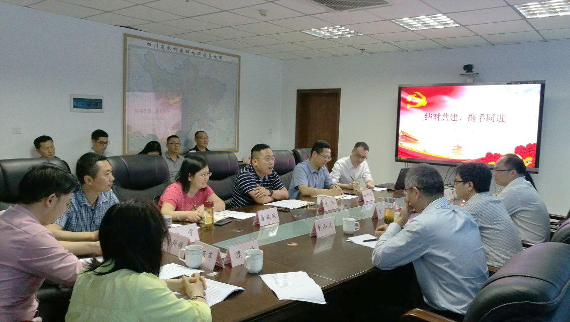 4月23日,新葡的京集团8814登录入口党支部教师党员代表在院长李天、党委书记曾小波的带领下,前往眉山水文局开展以“结对共建,携手同进”为主题的党建联建活动。眉山市水利局直属机关党委书记李陈、水文局党总支书记唐晓凤及党员代表共同参加活动,活动由唐晓凤主持。