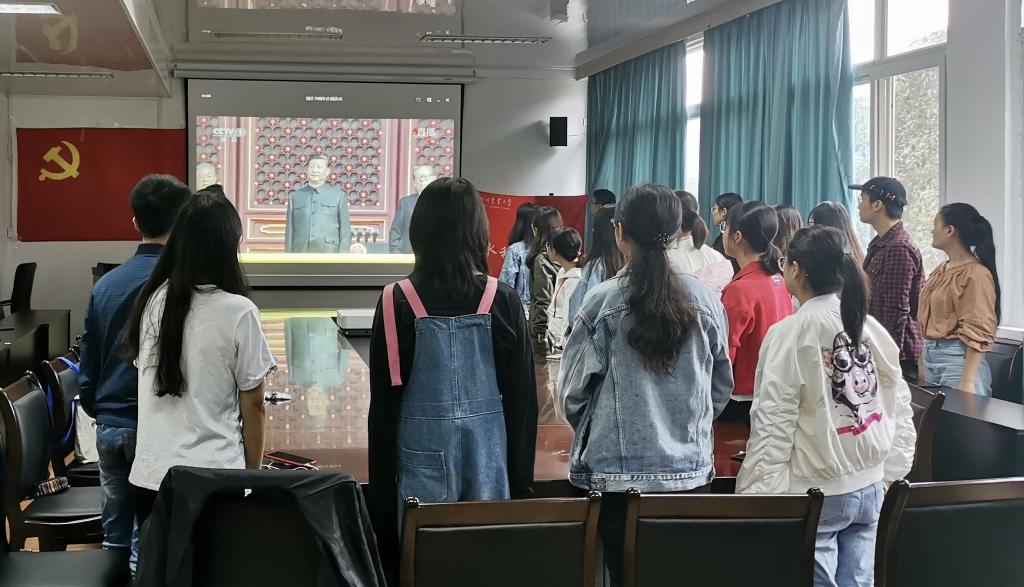 10月1日上午,在祖国母亲的70华诞之际,新葡的京集团8814登录入口于四教216组织学生党支部观看国庆阅兵直播,学院党委办公室老师彭小芮及学生党支部共50余人参与观看本次直播活动。