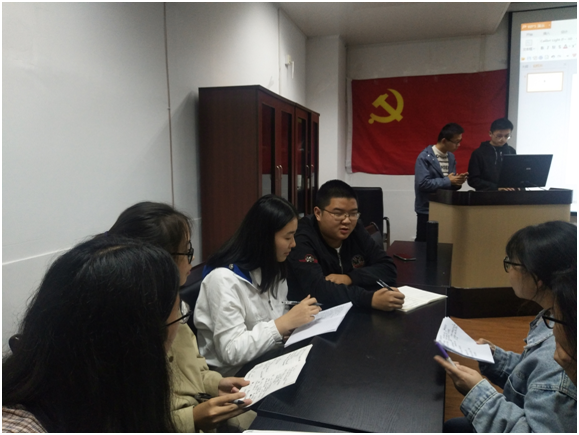 观影之后全体党员进行分组交流讨论,并选派一名代表上台总结分享。秦蜂同志在分享过程中说:“我们需要学习优秀党员为人民为国家牺牲的觉悟,不断强化自身思想意识。”“作为学生党员要有为人民服务的精神,淡泊名利,在学习生活中乐于吃苦奉献。”龚月婷也积极发表想法。“每个时代都有对应的责任与使命,工程建设战线对工科生提出了更高要求,我们不仅仅要有为民服务的心与热情,更需要长期坚持的能力和本领。”马松同志如上补充道。