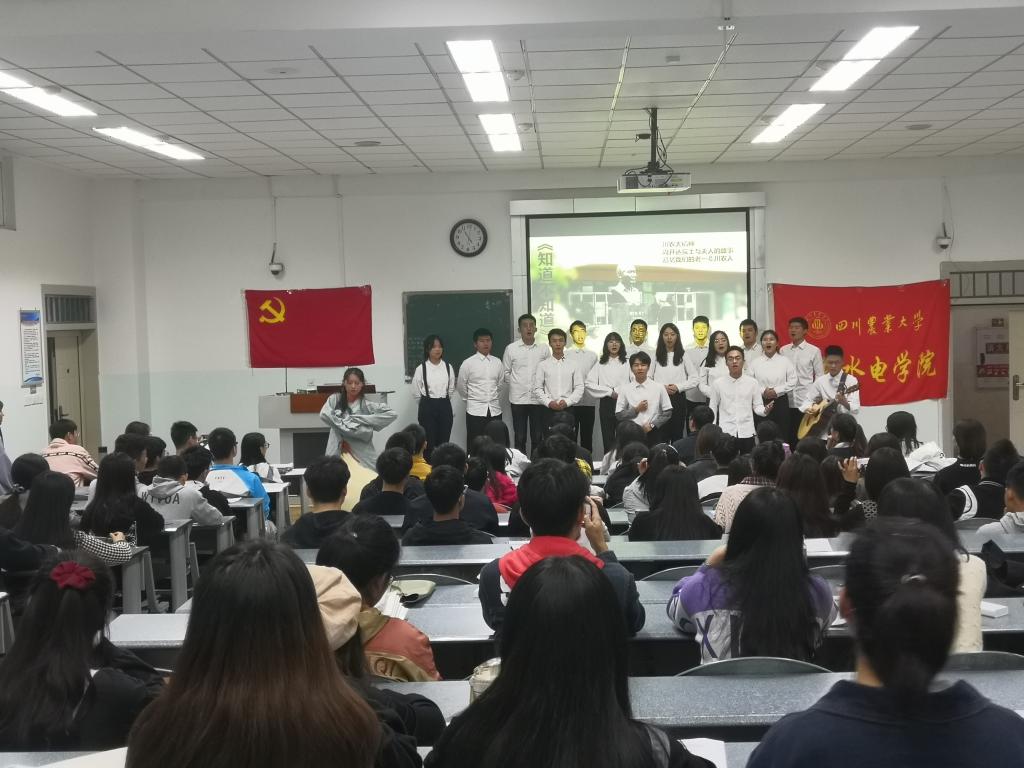据悉,在实践活动汇报会开始前期,入党积极分子培训班全体学员们分成8组,分别就“川农大精神20周年”、“同心战疫情,青春勇担当”、“勤俭永不穷,坐食山也空”、“脱贫攻坚战”四大主题进行选择,并定期组织开展形式多样的学习和实践表演排练。