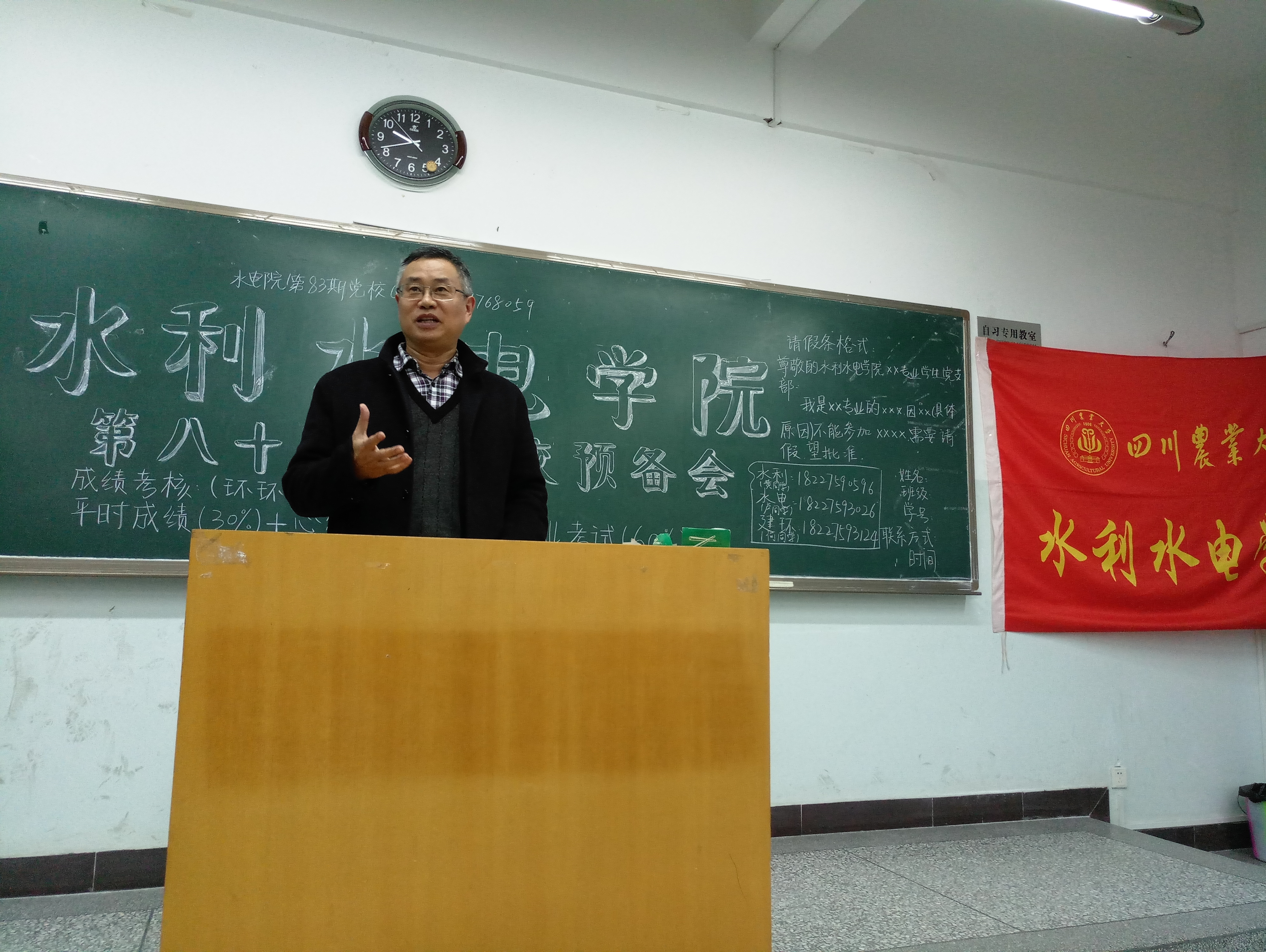 会上,曾小波首先解释了本期党校学员名额减少的原因并向同学们提出“作为一名入党积极分子,首先在思想上要有铁的纪律”的入党要求。他强调,同学们一定要谨记身份,巩固和加强入党信仰,珍惜每一次的学习机会,增加知识,增强意识,守纪律,懂规矩。并用一名大四学生在找工作时才有入党想法的例子告诉同学们,要有正确的入党动机,入党不是为了工作,“我自愿加入中国共产党”这句话更不是空谈。最后,他提出,作为当代大学生,身为党校学员的同学们,必须具备“根植于内心的修养、无需提醒的自觉、有约束下的自由以及为他人着想的善良”的素质,并祝愿每位同学都能顺利结业。
