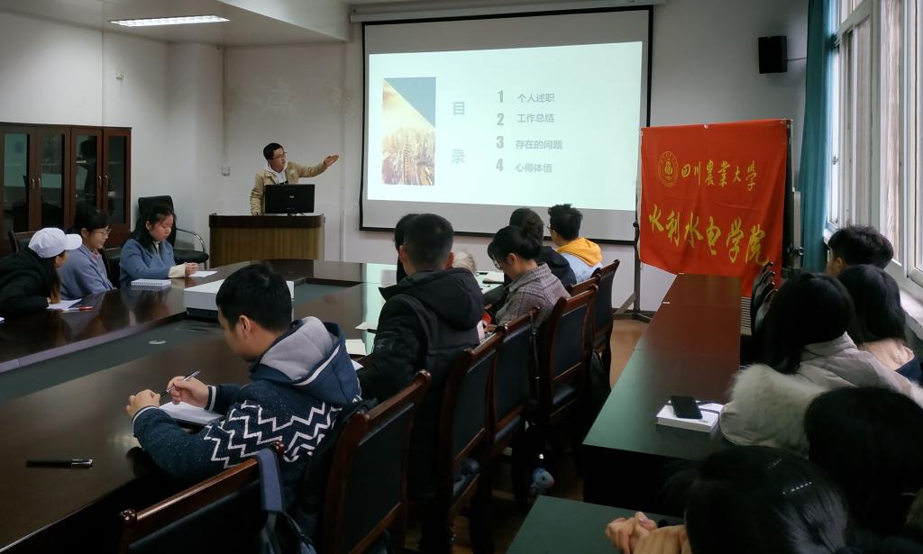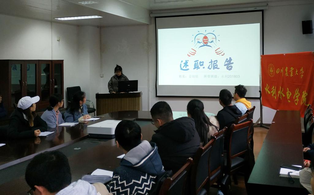 此次报告会按照水利、水电、能动的专业次序,各班助针对班级的学习成绩、班级建设、个人成长等方面进行了述职陈述,分享经验。其中水利1班的每周7-9节自习课、水电1班的每天早晚两节自习无不体现出班助对新生学风建设付出的努力。水利4班的班助提出的一月一次读书分享会以及鼓励小班同学多读书也体现出班助们在精神文明建设中所做出的尝试与探讨。水电2班班助提出的以身作则、扮演好自己的角色等也展示出学院对新生班主任助理这个职位的定义与期望。而水电4班班助介绍的建立微信家长群、班级微博及公众号更是为班主任与学生、家长建立良好的互动关系提供了新颖的思路与方案。
