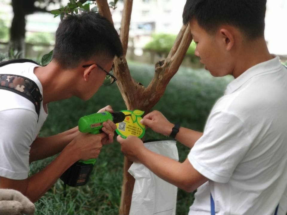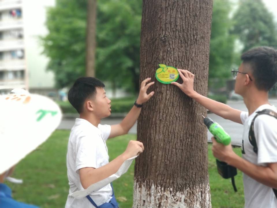 在绿化部工作人员的指导下,老校区制作的树木标牌随处可见,路过的同学们看到了树上的标牌也停下了他们匆匆的步伐,观看标牌,扫码,该团队付出的努力和成果也得到了大家的认可。通过本次活动,及时响应了的学校绿化信息化建设的要求,也让同学们充分意识到了作为学校的一份子,有义务了解学校的一点一滴,加深对校园环境绿化建设的理解,关注校园绿化建设,为校园绿化建设贡献自己的一点力量。