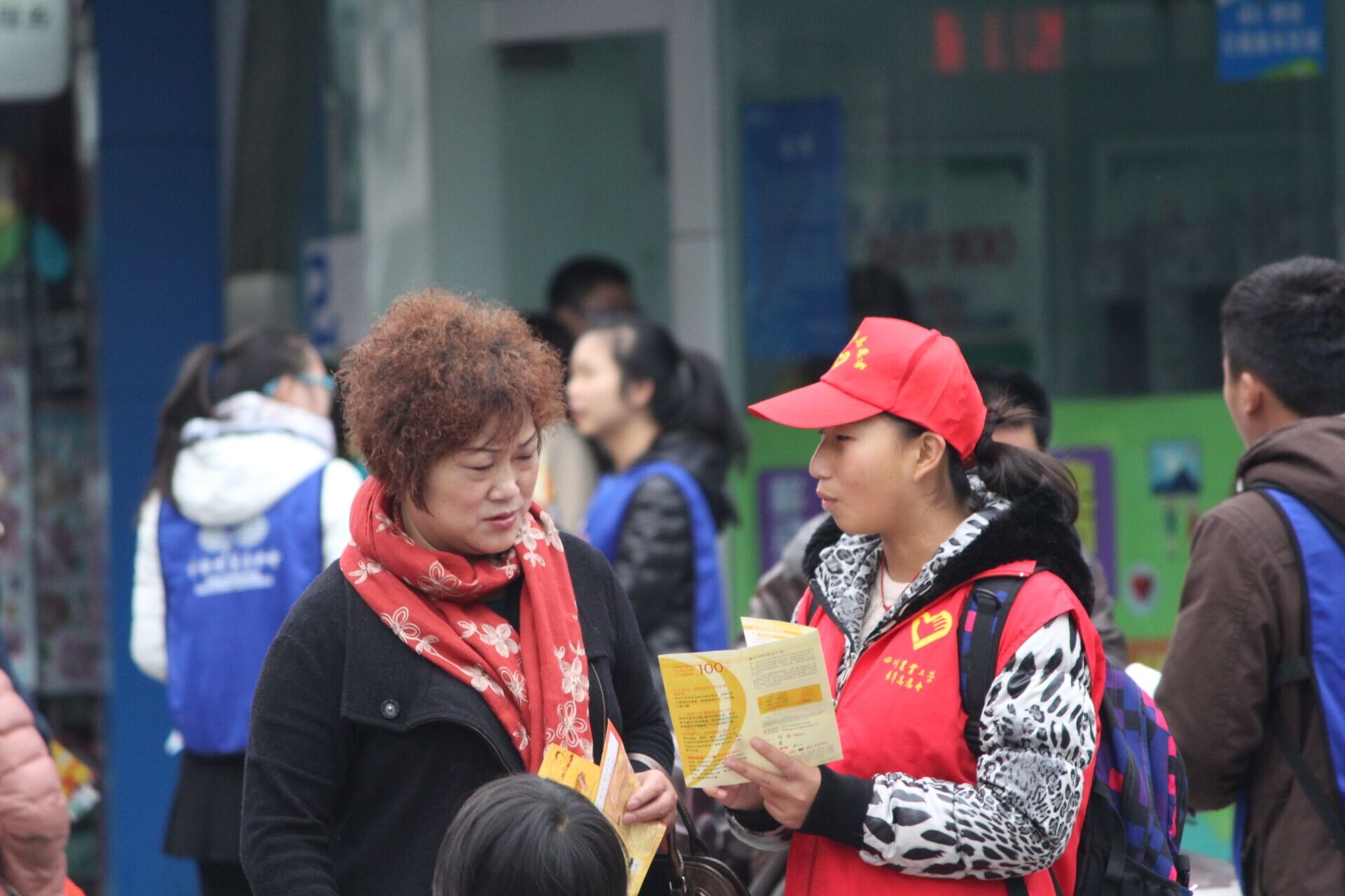 活动中,68名志愿者身穿统一的服装,一部分在邮局旁募捐点宣传,另一部分志愿者到人流密集处劝募。有意愿的募捐者会由志愿者直接带到募捐点登记,并到邮局柜台办理募捐手续。