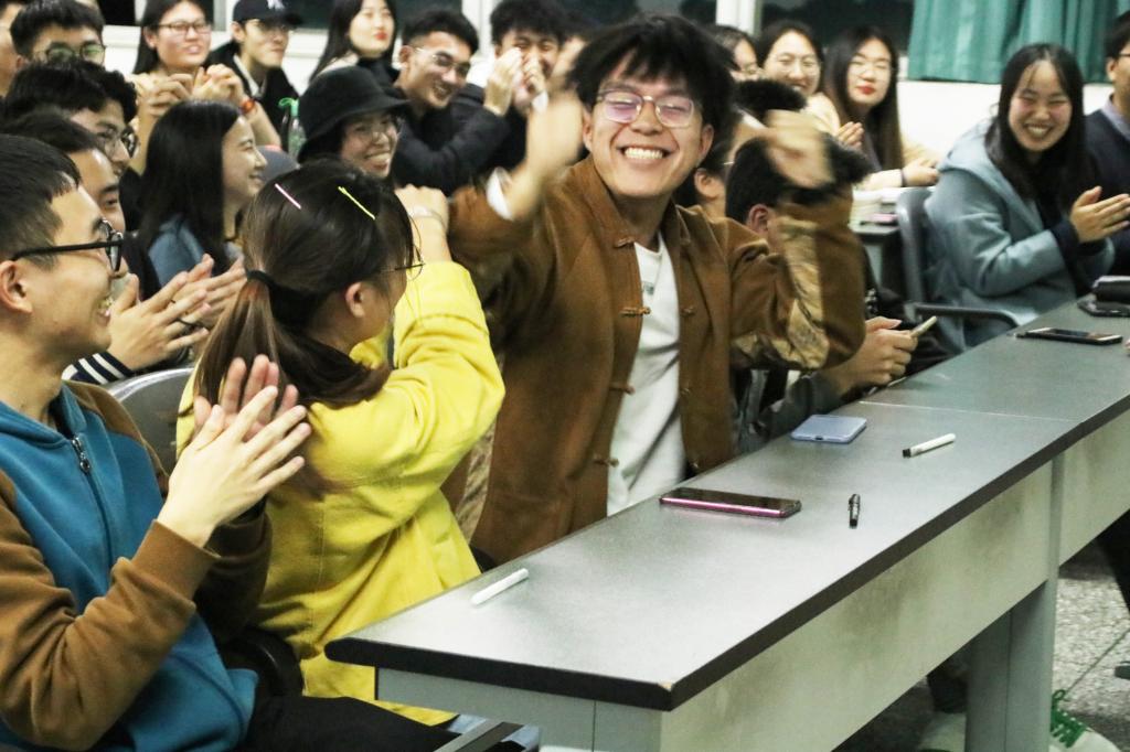 紧张的抢答环节过后,迎来了选手们共同完成试卷的“众志成城”环节,为了不影响答题,现场观众们保持安静,选手们也抓紧时间完成试卷,现场可谓是“无哗战士衔枚勇,下笔春蚕食叶声。”经历了前三个环节的精彩角逐后,为了使观众感受竞赛的刺激感,同时增加竞赛的趣味性,活动第四个环节“幸运5V5”设置为观众互动环节,现场十名观众上台分为两队,而答题的顺序由猜拳获胜的一方决定,充满趣味的答题题目和过程使现场的气氛顿时活跃起来。