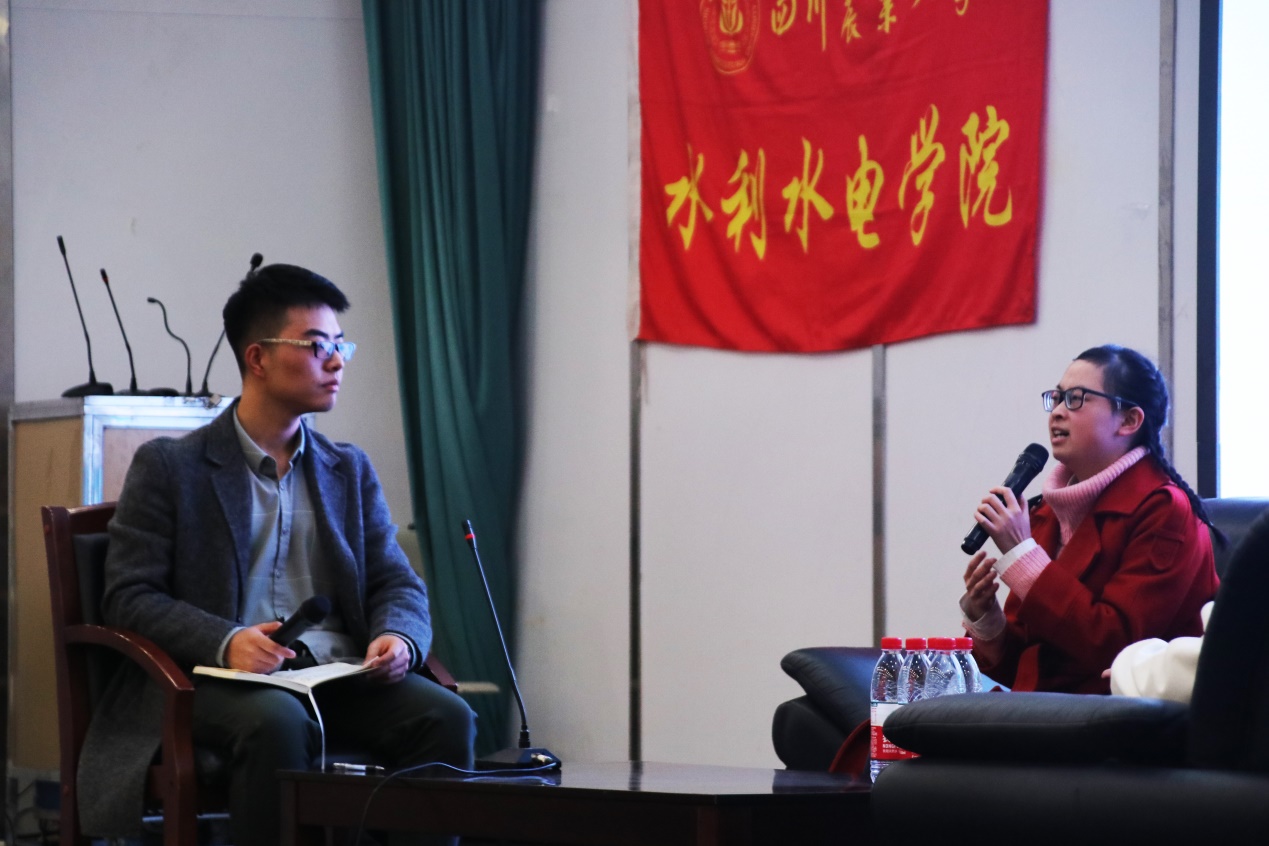 最后一位分享成长之路的嘉宾是已成功被同济大学录取的直博生祁海玥。学习不止于书本,白纸黑字之外处处都是值得思考的风景,这是水院院训——知行合一的具体展现,也是祁海玥的大学生活写照。祁海玥谈到刚到川农时也同样经历过迷茫和彷徨,但却并没有因此失去方向,而是努力学习、醉心科研,与朋友相互鼓励,充实地走过每一天,最终取得了令人满意的成绩。“愿我们心有所愿,为梦而来”,这是祁海玥在分享的最后对所有观众的祝福。