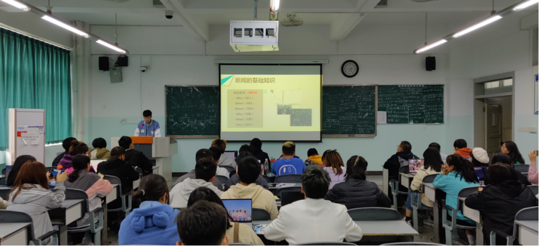 培训会首先由新闻采编部孙彬彬进行新闻稿的培训,培训内容包括新闻稿的基础知识、主要特点、组成格式等一些基础知识。之后采编部部长许汉婷针对新闻稿的写作内容以及格式做了更加详细的讲解与区分,将新闻稿分为前中后三部分进行叙述,并就一些新闻稿写作过程中的注意事项进行提示。