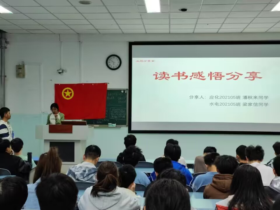 为持续深化学习贯彻习近平总书记关于青年工作的重要思想,引导青年学生深刻感悟党领导中国青年运动的光辉历程,指引支部团员青年传承五四精神,践行初心使命。4月25日,水利202104团支部、应化202105团支部、水电202105团支部及水电202204四个团支部联合举办了“青春心向党,挺膺向未来”主题班团活动,参加活动人数100余人。本次班团活动在10A-301举行,分为“奋斗正青春,逐梦新征程”主题微团课和“书香满校园,阅读伴成长”主题分享会两个部分,有幸邀请到校级优秀青马班学员李宇师兄进行微团课分享。
