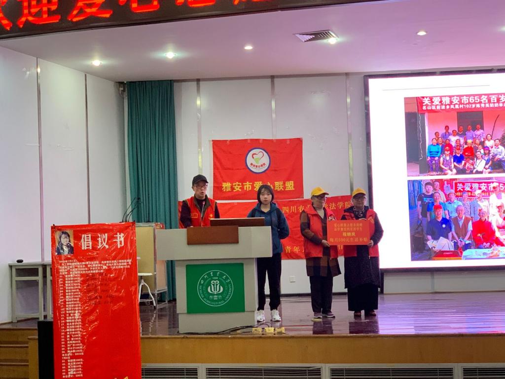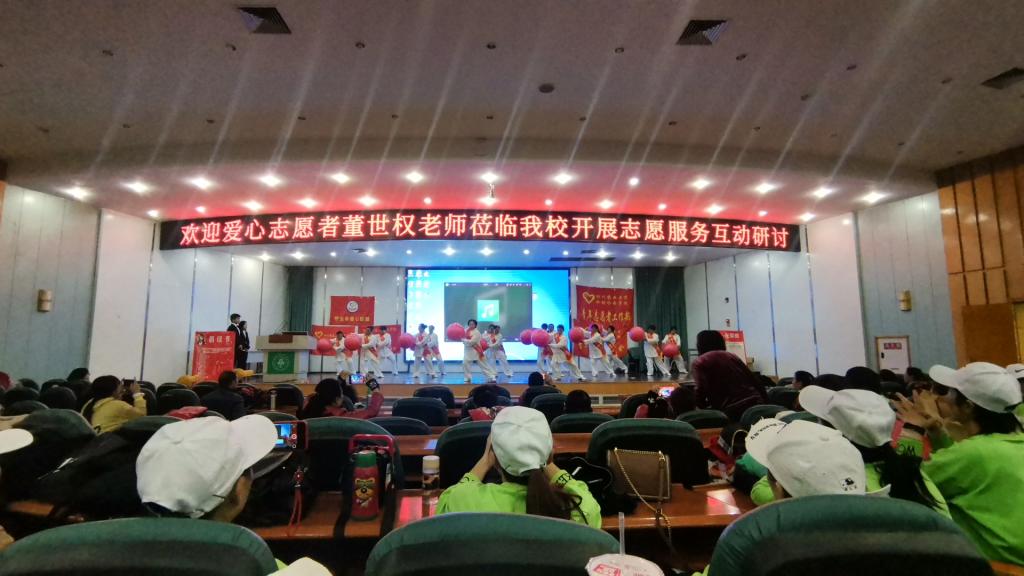 活动进行中,董老师的团队为同学们带来了精彩的节目表演。雅安市爱心联盟的工作重心主要是为了老年人能度过一个精彩的晚年,所以表演的节目也十分契合服务对象。龙珠操、舞剧等丰富多彩的表演方式,不拘泥与传统,是志愿服务形式上的一种革新。老年人在晚年能参与诸如此类的活动,使他们感受到快乐、幸福。最终达到志愿服务的目的。爱心联盟团队不仅服务老年人,也时刻关心着青年人,儿童的成长与生活。在这次活动中,受资助贫困学生程晓岚也登台表达了自己对董老师及爱心联盟其他志愿者的感谢。