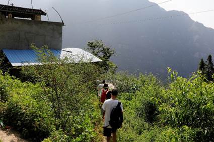 图为实践团队成员前往竹坪村村民家。李永航 摄